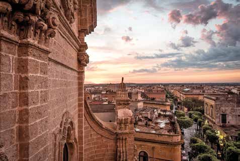 La “bella Nardò”, adagiata sul versante ionico del tavoliere salentino, tra Lecce e Leuca, ha origini antichissime. Fu per secoli, un importante centro bizantino e, dal 1497 sotto la famiglia ducale degli Acquaviva, divenne il principale centro culturale del Salento, sede di Università, di Accademie e di studi letterari e filosofici: fu definito la Nuoua Atene litterarum. Il toponimo deriva etimologicamente dal termine illirico nar, che ha il significato di acqua, con probabile richiamo all’antica falda acquifera presente nel territorio; lo zampillo d’acqua, uno degli elementi raffigurati nello stemma civico, assieme al toro, richiama le mitiche origini greche della città. Scrigno di arte e natura, l’importanza culturale di Nardò trova riscontro in una straordinaria ricchezza di palazzi, chiese, cappelle e singoli dettagli architettonici che la rendono una delle più belle città del barocco leccese; ne sono testimoniaza, tra gli altri, Piazza Salandra (foto 1), nel cuore della città, che è stata l’incantevole scenografia di moltissime pellicole del cinema italiano e internazionale, la Guglia dell’Immacolata, l’antico Sedile con la statua di San Gregorio Armeno; il palazzo settecentesco dell’Universitas; l’orologio Caccialupi, la fontana del Toro, simbolo di Nardò e la chiesa di San Domenico. Magnifico esempio di barocco scolpito nel carparo. sono la Cattedrale, la