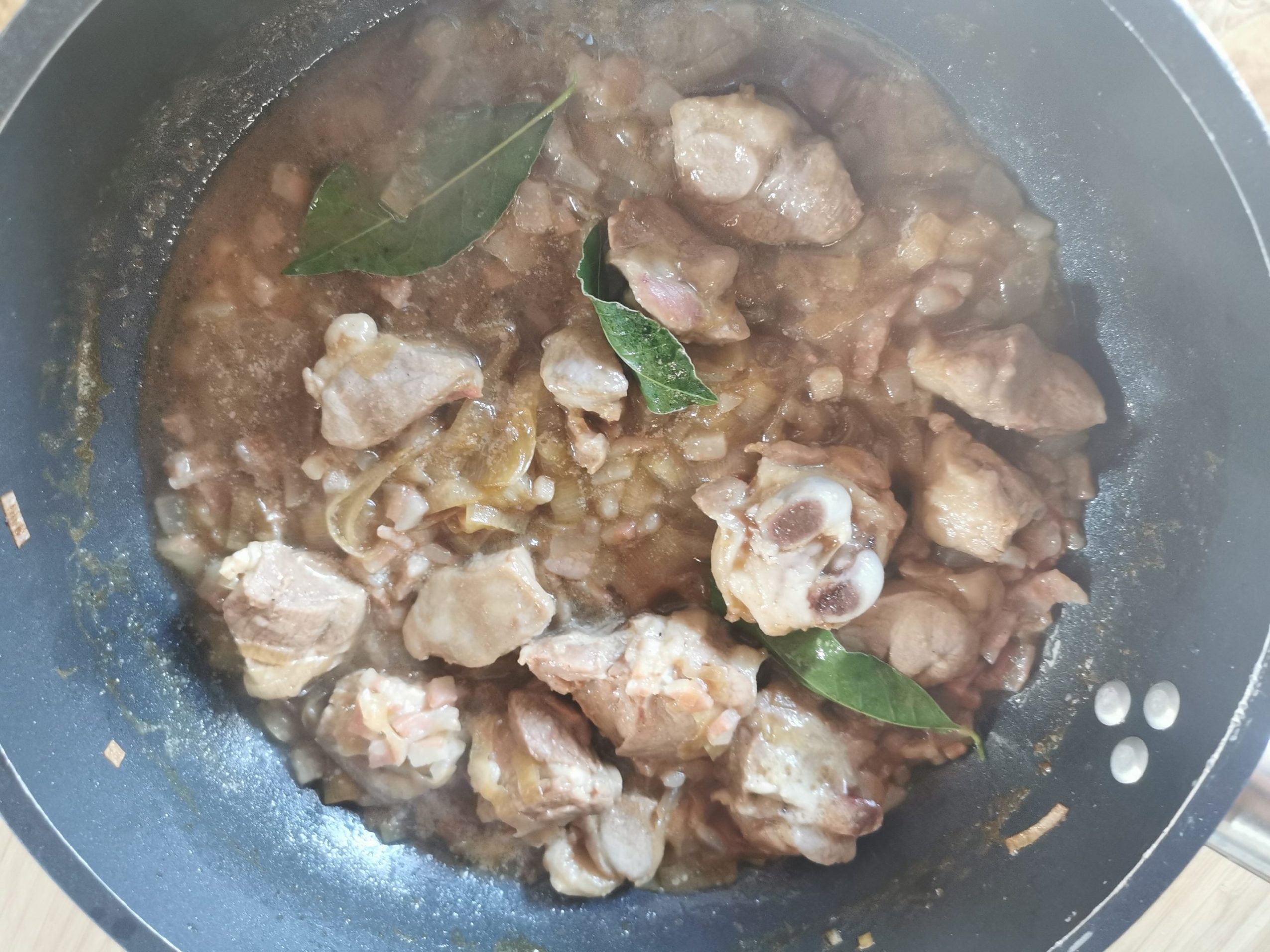 Far cuocere senza coperchio per circa 10 minuti, quindi aggiungere qualche foglia di alloro, coprire e proseguire la cottura per altri 30/40 minuti a fuoco medio.
