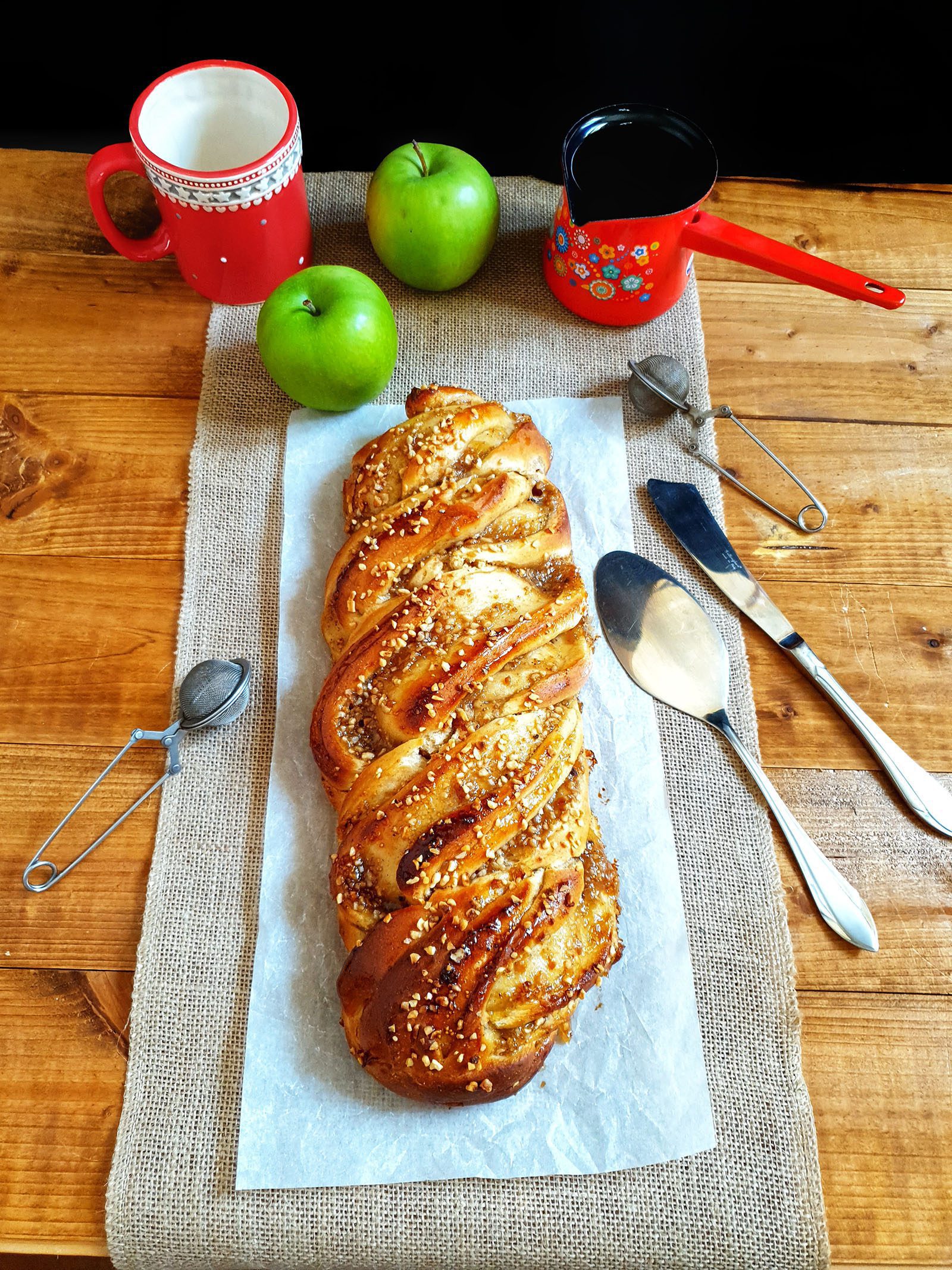Spennellare la babka alla cannella appena sfornata con lo sciroppo di zucchero.