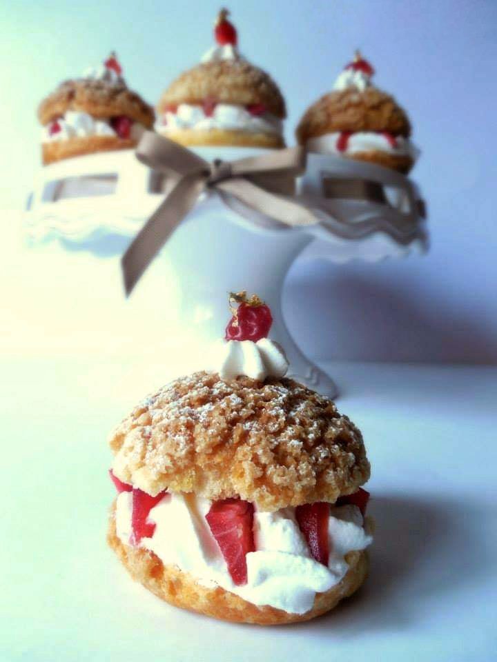 I bignè craquelin sono un dolce tipico della pasticceria francese davvero raffinato. Si distinguono dai classici bignè per il pate craquelin, uno strato zuccherino e croccante che li rende davvero deliziosi. In questa ricetta, la pastry chef Marcella Orsi ha farcito i bignè con una deliziosa crema chantilly e con delle fragole fresche