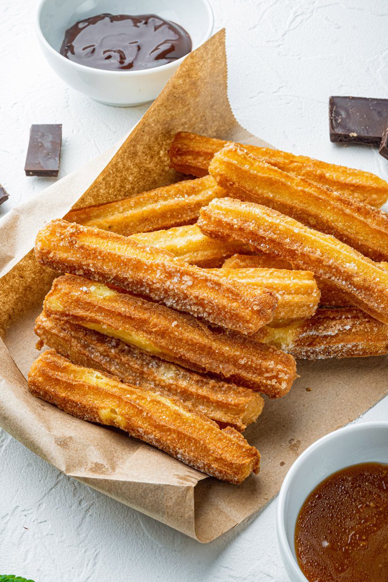 I churros sono dei golosi dolcetti fritti tipici della cucina spagnola. Super croccanti e ricoperti di zucchero e cannella, i churros sono facilissimi da preparare anche a casa e sono perfetti da intingere nella cioccolata calda o nel cioccolato fuso.