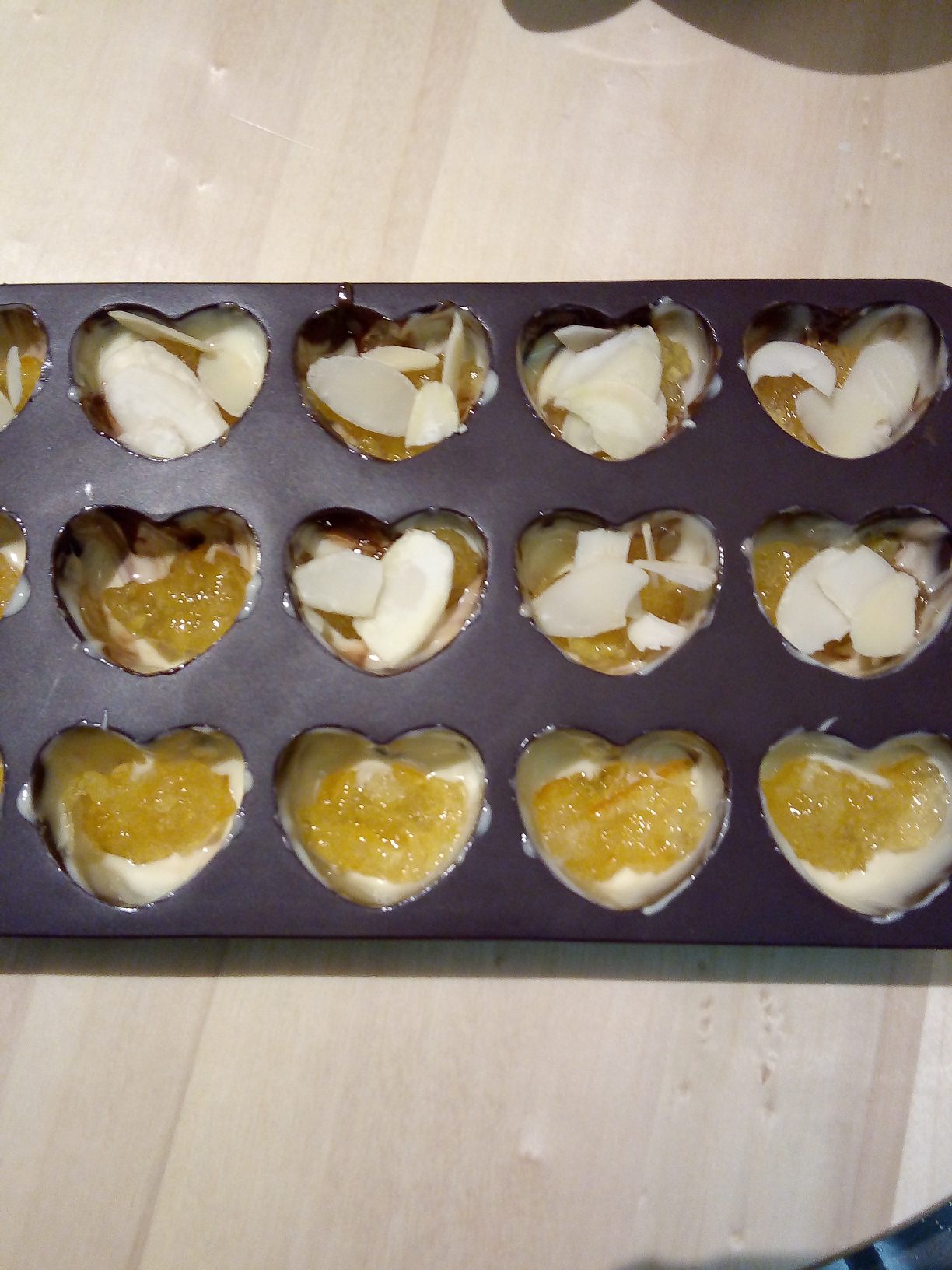 Per la farcitura usate della marmellata di arance amare e qualche scaglia di mandorle.