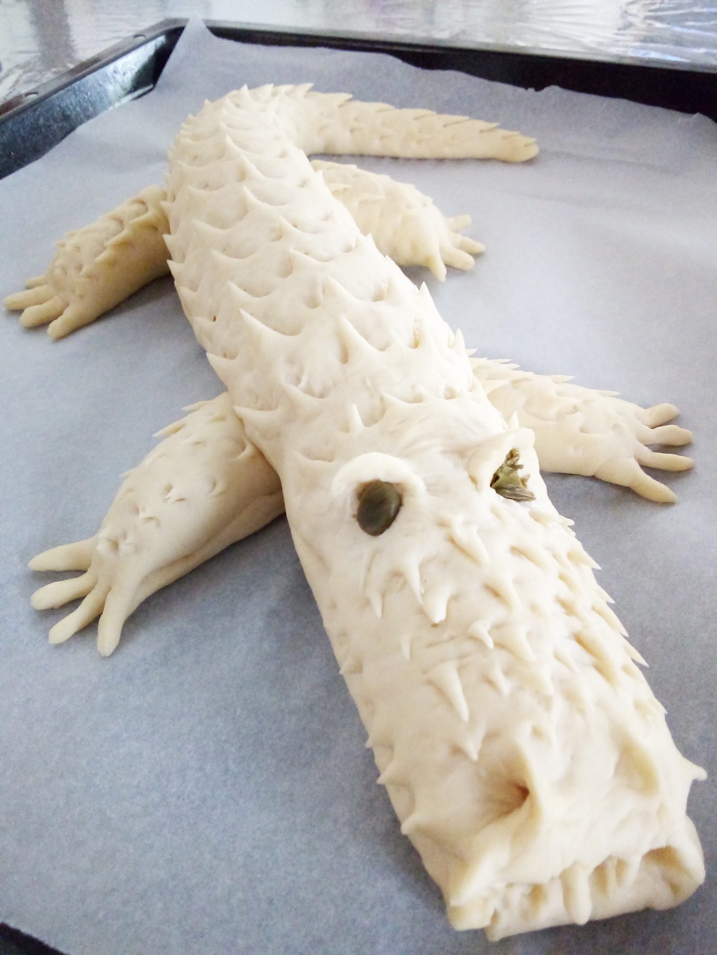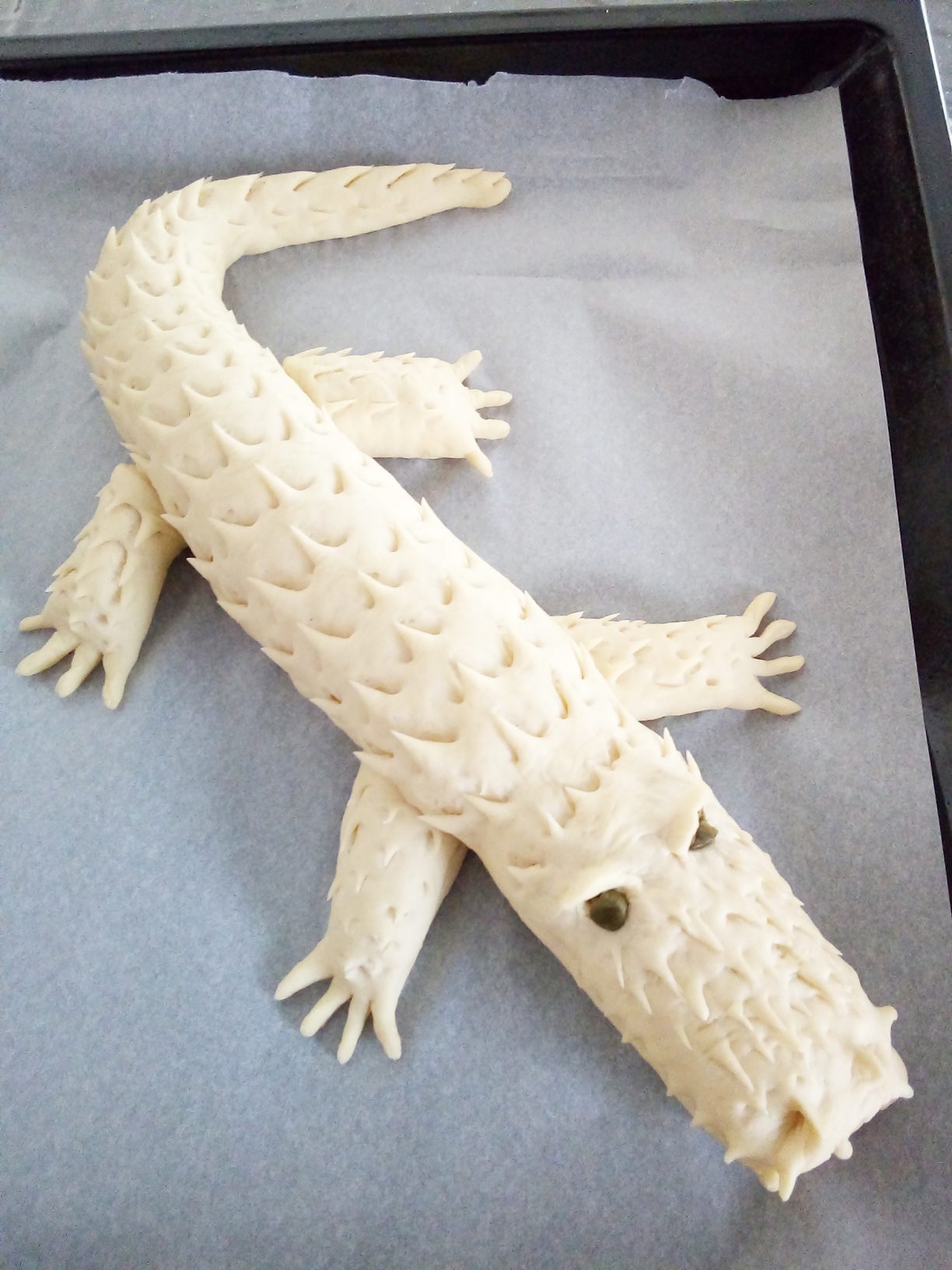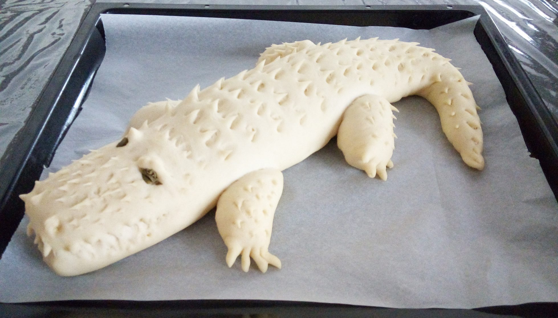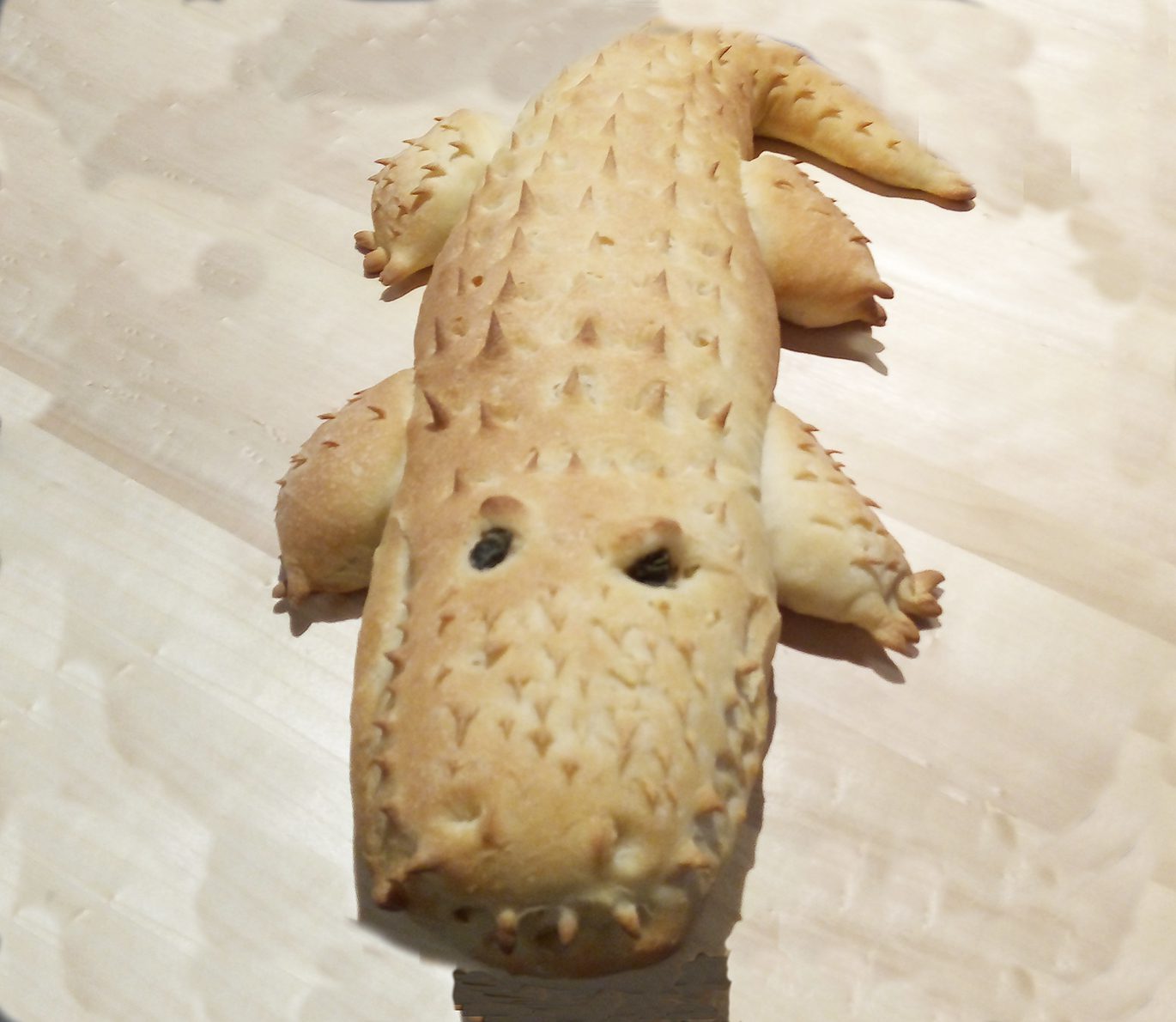 I bambini vorranno mangiargli la pancia, oppure la coda o addirittura le fauci. Che spasso il coccodrillo di pane!