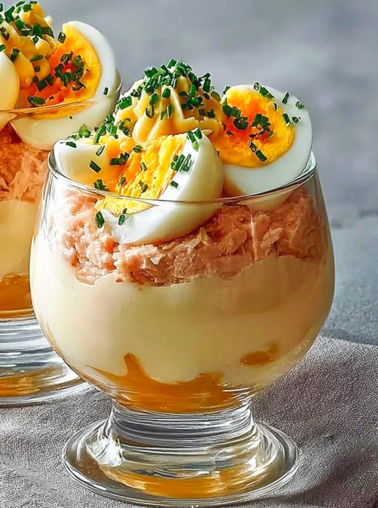 La coppa salata a strati con crema di patate, tonno e uova sode è un antipasto molto rapido che funziona bene anche per buffet o aperitivi perché si può preparare in anticipo. Questa è dunque una ricetta semplice ma efficace perché lavora su tre consistenze: crema, fibra del tonno e uovo e visivamente nel bicchiere funziona molto bene.
