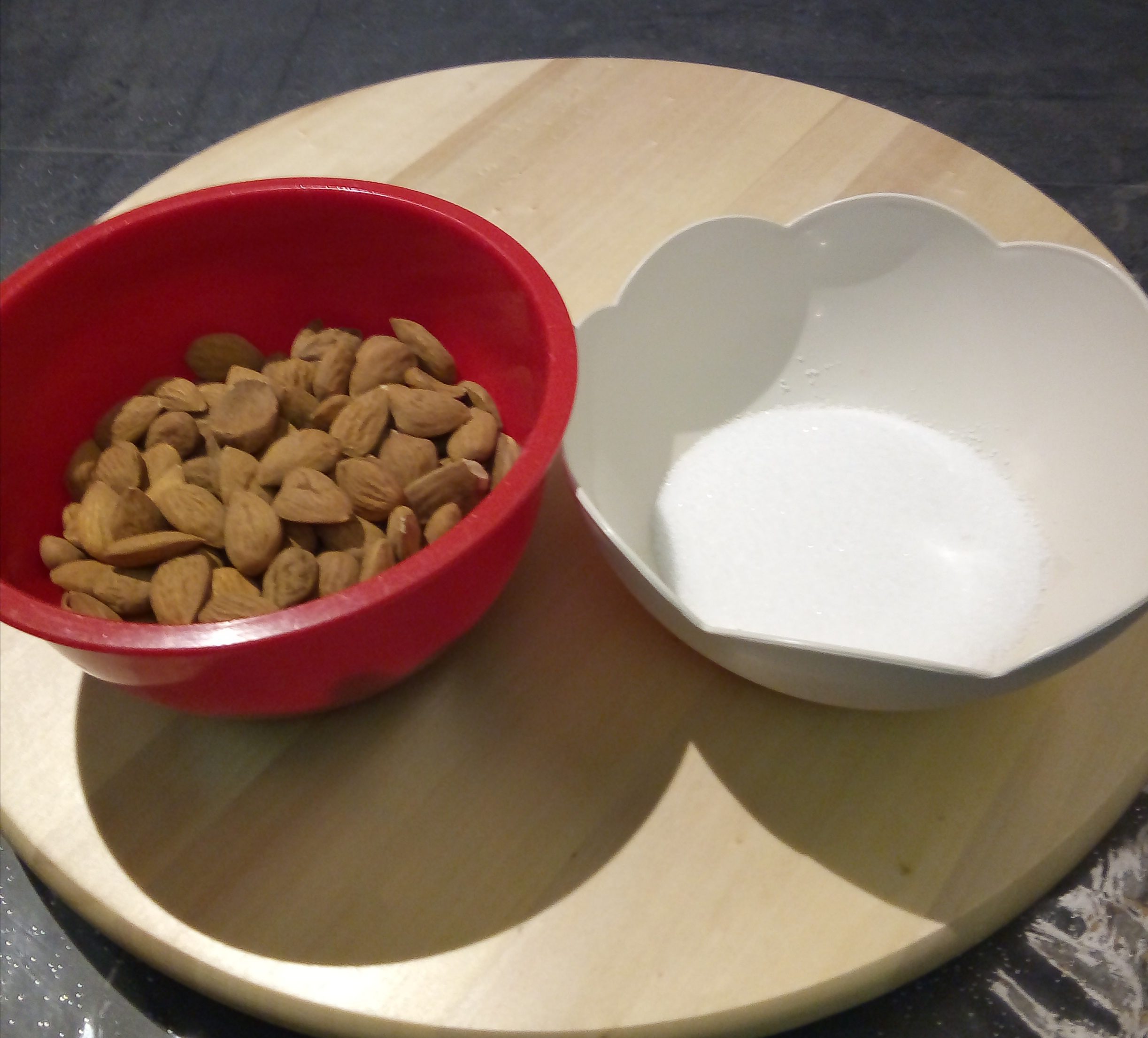 Per prima cosa, mettere a scaldare le mandorle in forno a 150° per 5 minuti circa.