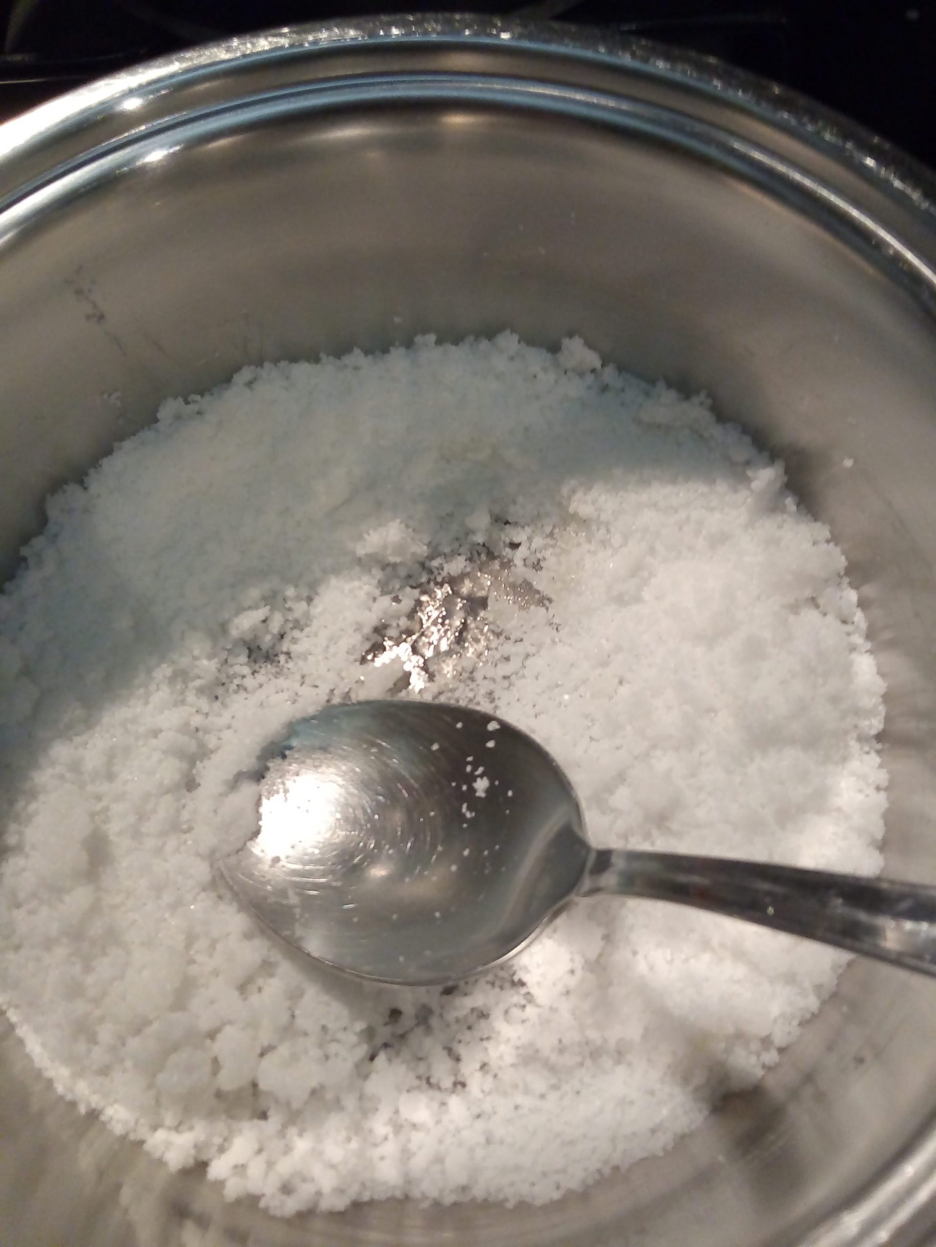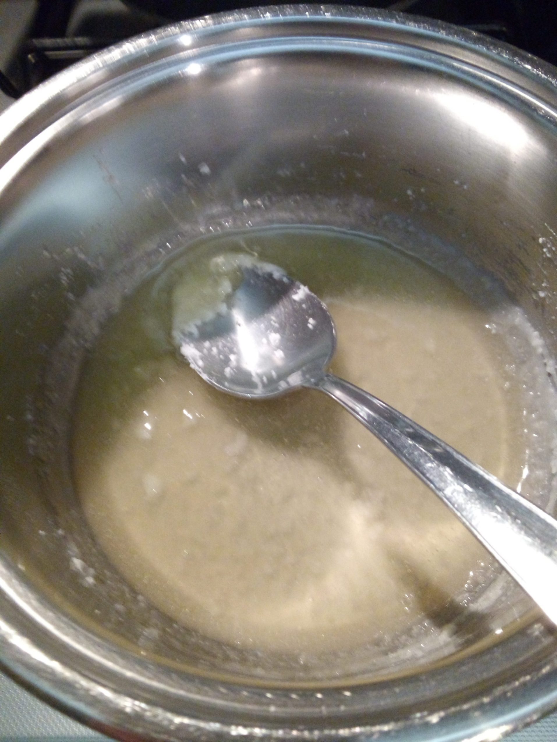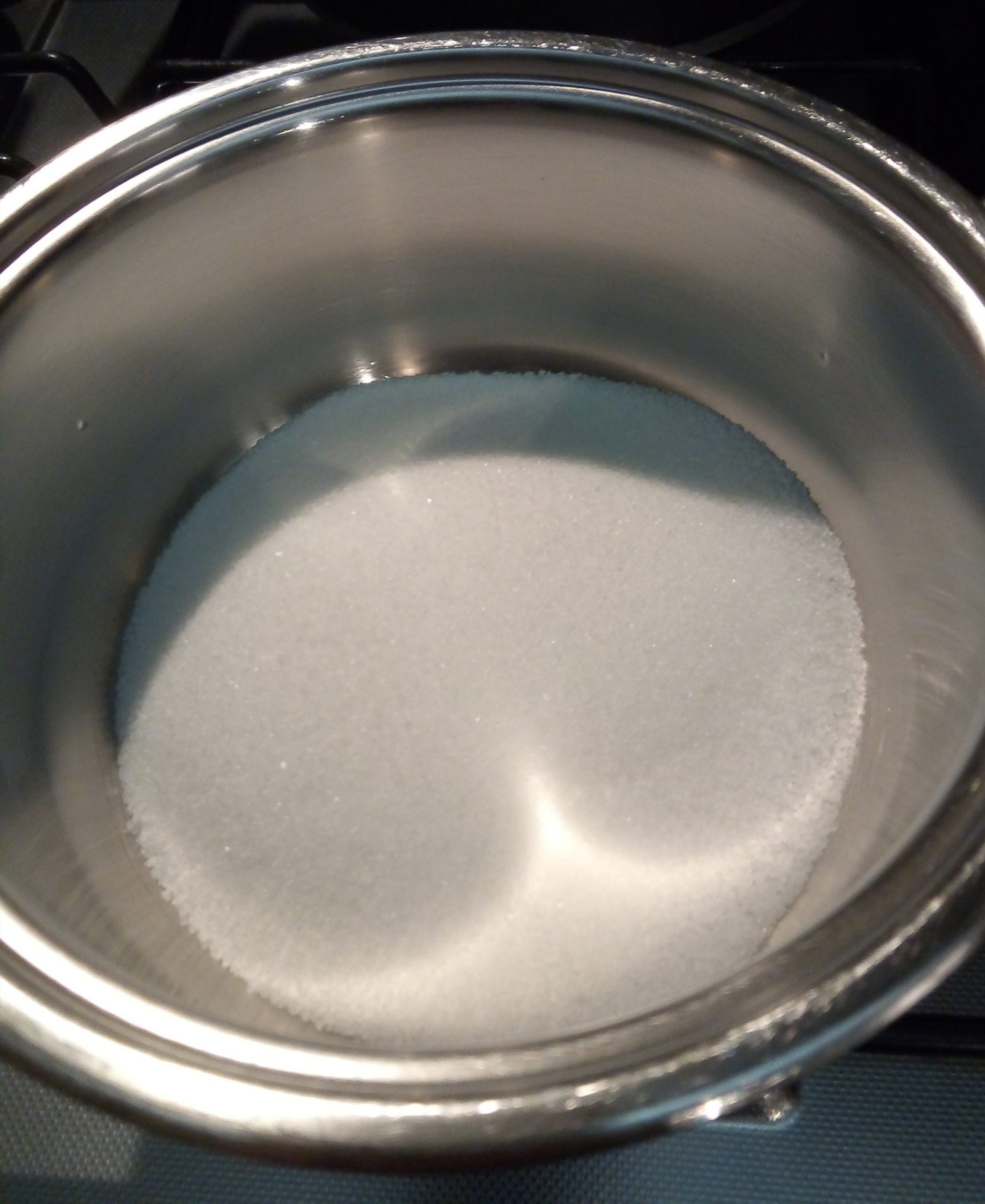 Nel frattempo, in una pentola dal doppio fondo, mescolando di continuo, iniziare a scaldare lo zucchero a fuoco basso fino a scioglierlo completamente.