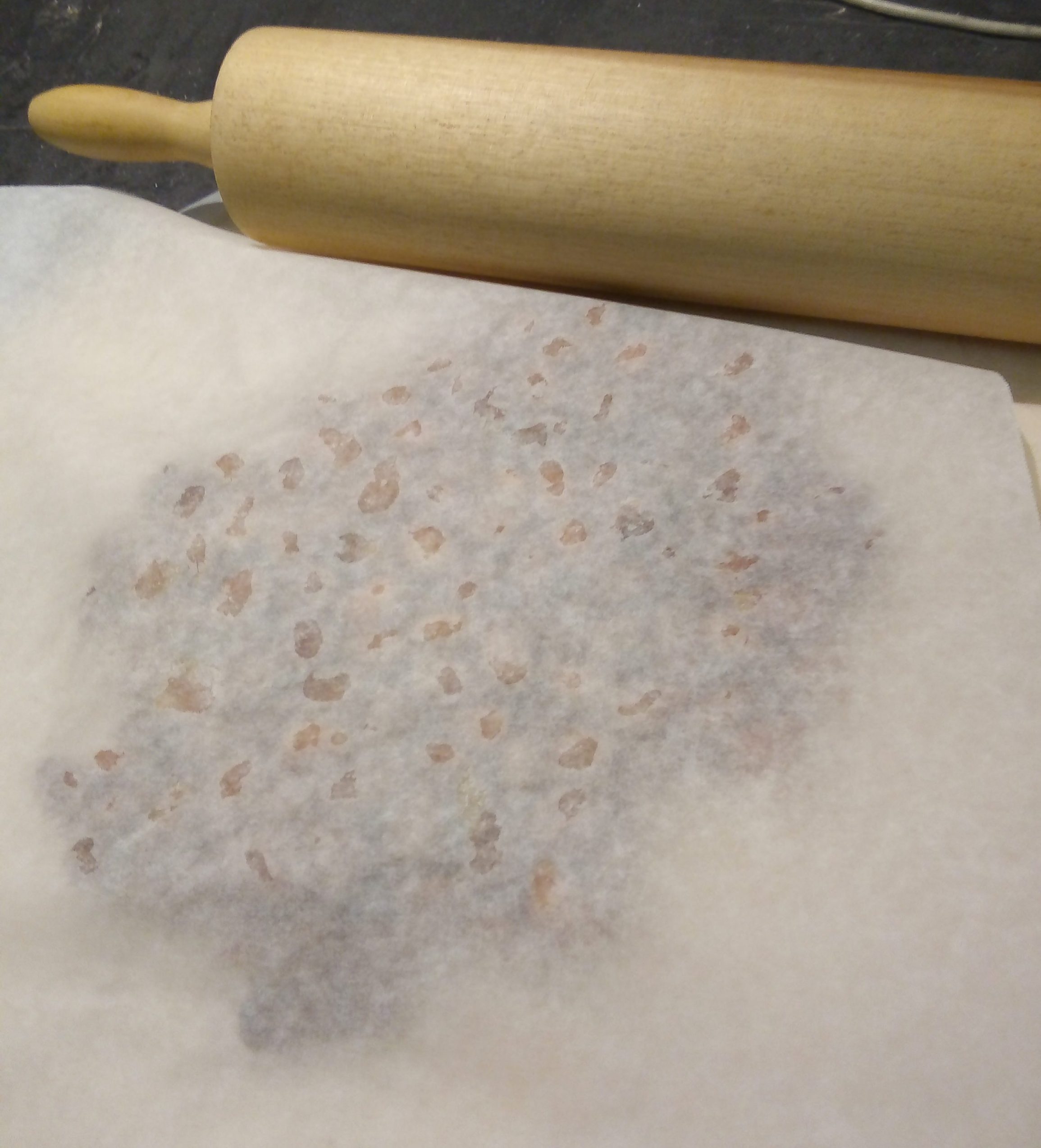 Coprire con un secondo foglio di carta forno e livellarlo con l’aiuto di un mattarello.