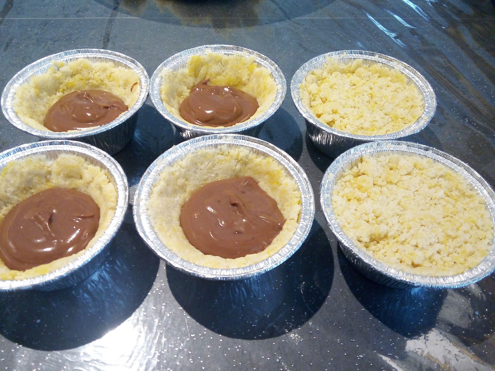 In un secondo momento, accendere il forno a 180° statico e mentre raggiunge la temperatura, preparare i pirottini foderandoli di pasta fino ai bordi, lasciando vuota la parte centrale dove verseremo 2 cucchiai di crema. Dopo di che ricoprire con altra pasta, premendo leggermente per appiattirli.