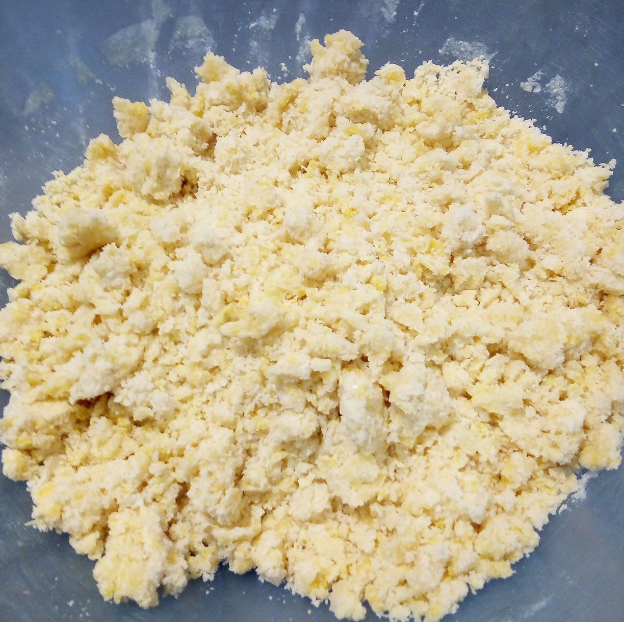 Per prima cosa, in una ciotola, lavorare il burro con lo zucchero fino ad ottenere una crema, aggiungere l’uovo, la farina, il sale, il lievito, la vanillina e mescolare velocemente in modo da formare un impasto sabbioso, tipico del crumble.