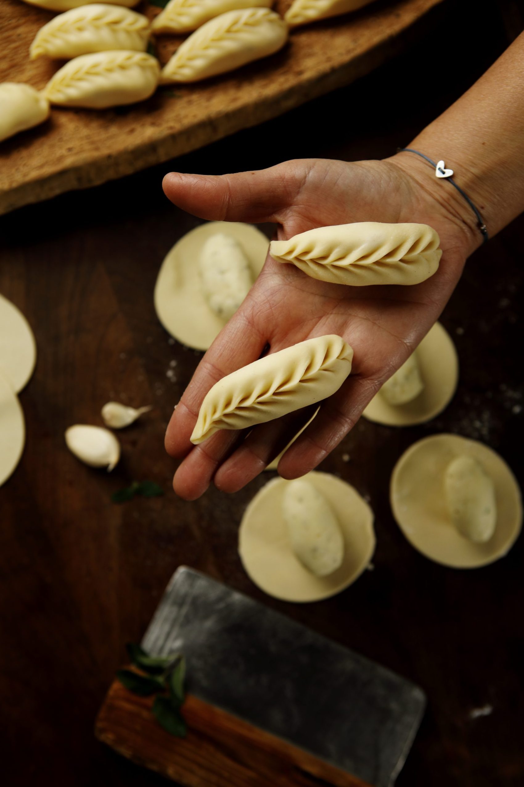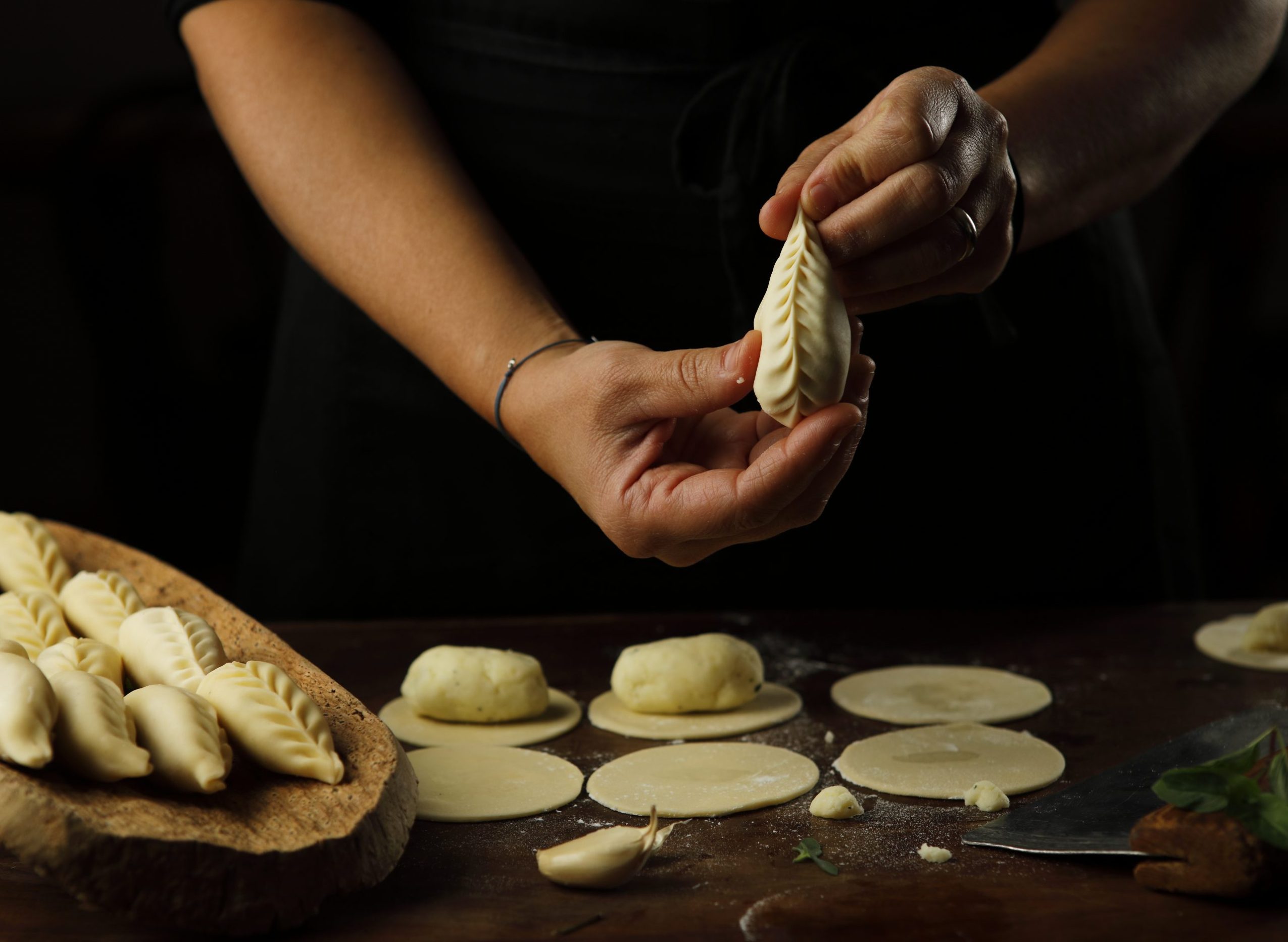 Alla fine, inserire nei dischetti di sfoglia un cucchiaio d’impasto e ripiegateli su se stessi unendo i lembi, pizzicandoli alternativamente fino a formare una sottile cordonatura simile ad una spiga.