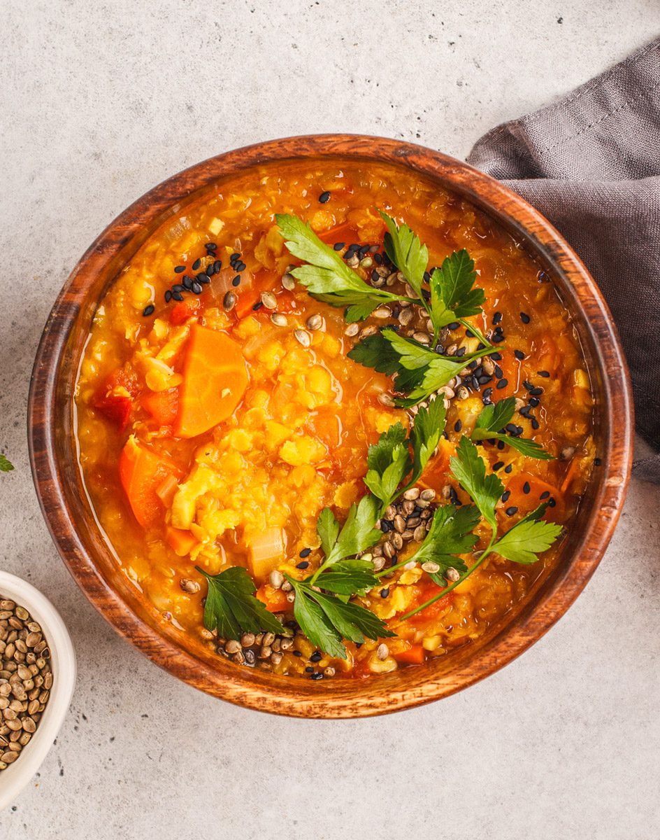 Il dahl di lenticchie rosse è un piatto tipico indiano, una zuppa calda e nutriente che rappresenta per molti un vero e proprio comfort food!