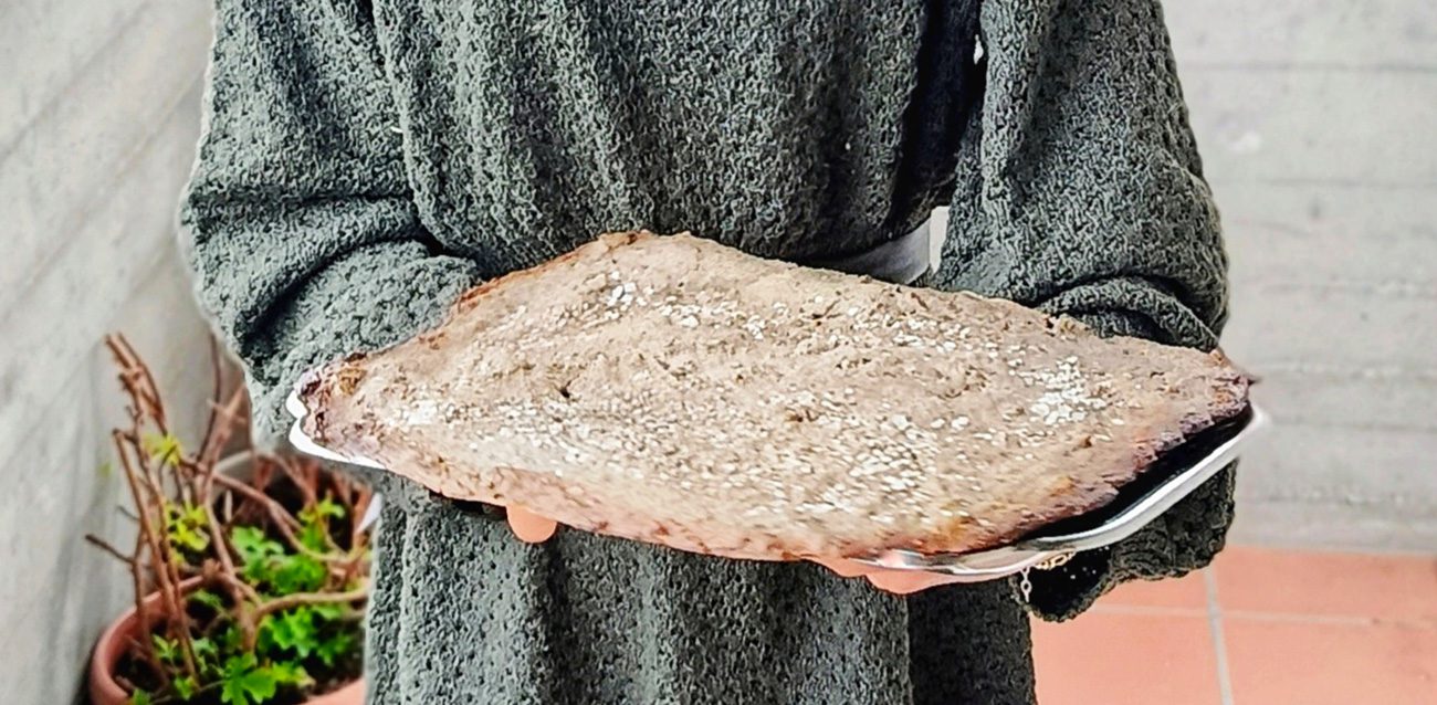 Dopo 8 ore rovesciare l’impasto su una spianatoia in legno spolverata di farina. Appiattire l’impasto delicatamente con le mani e ripiegarlo su sé stesso. Adagiare su una teglia da forno con i bordi rialzati, unta con olio evo. Lasciare riposare per un’oretta. Spennellare la superficie della focaccia con olio e un po’ di sale (e del pepe, se vi piace).