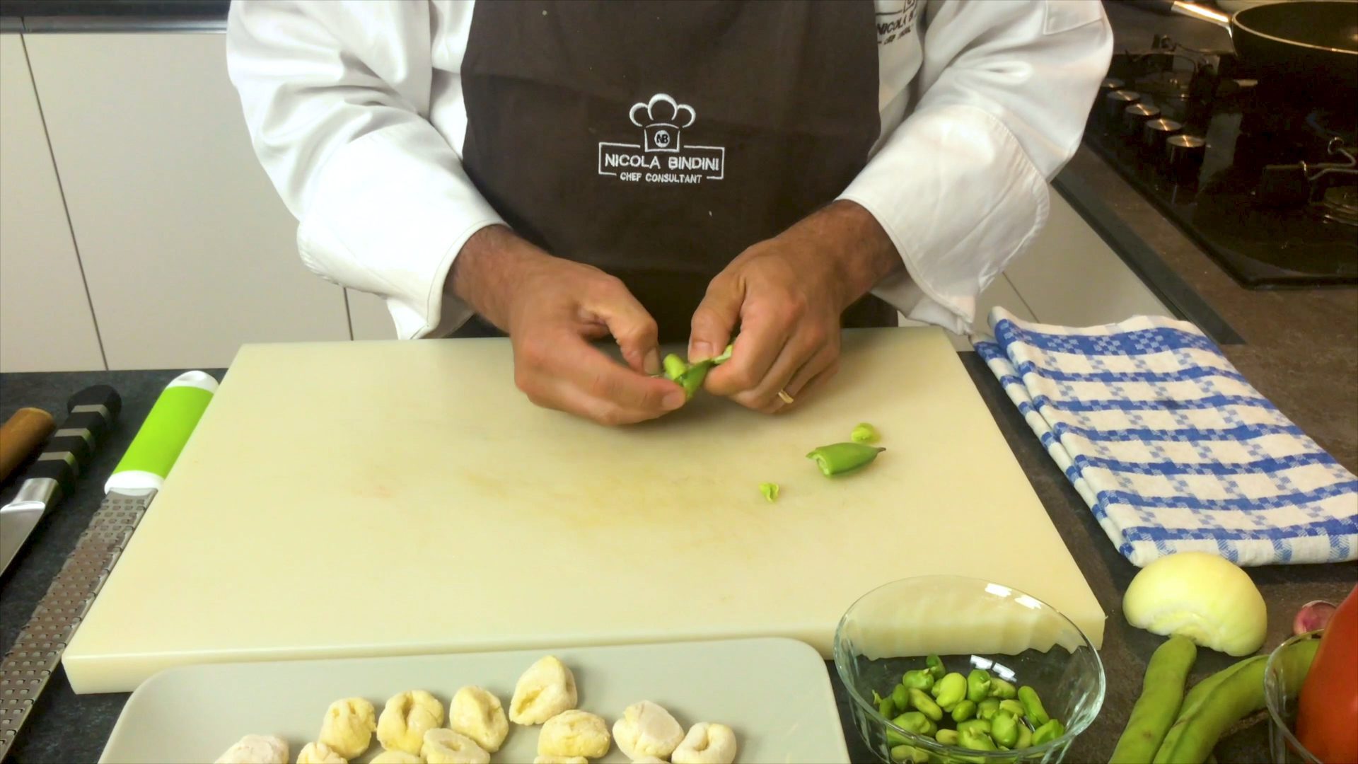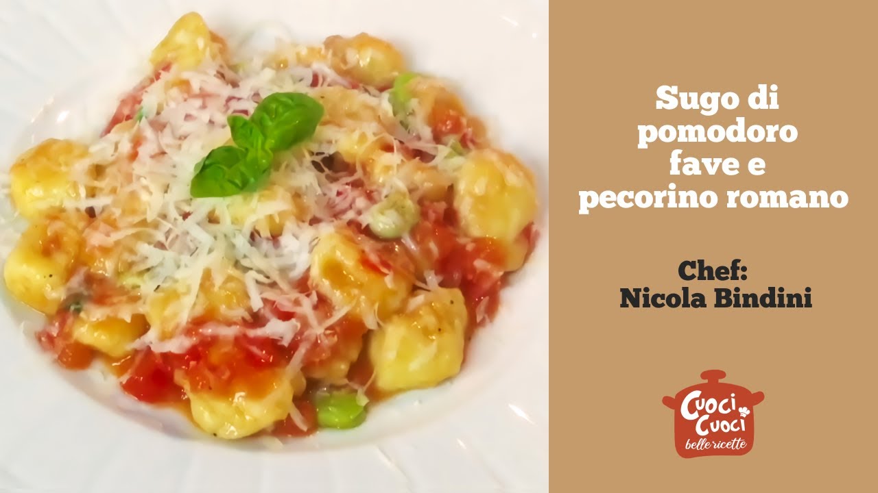 Gnocchi al pomodoro con fave e pecorino, sono un modo originale per cucinare gli gnocchi di patate.