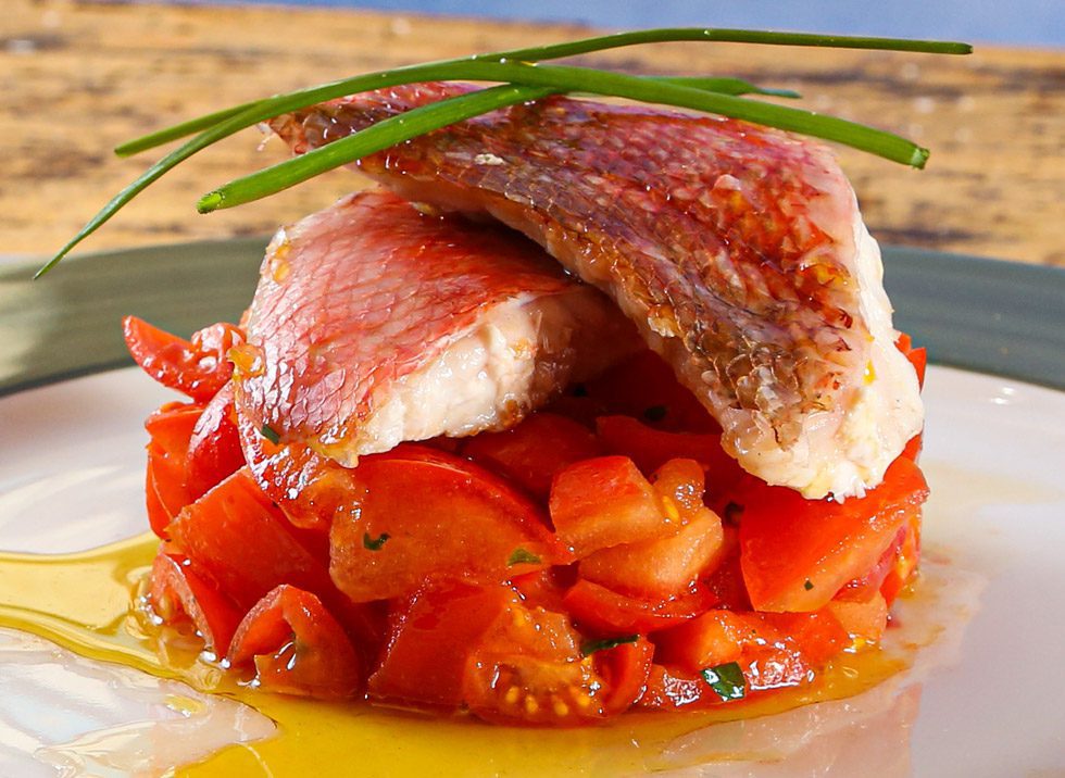 Per iniziare, mettere a marinare lo scorfano con succo di limone, olio extra vergine d’oliva e uno spicchio d’aglio.