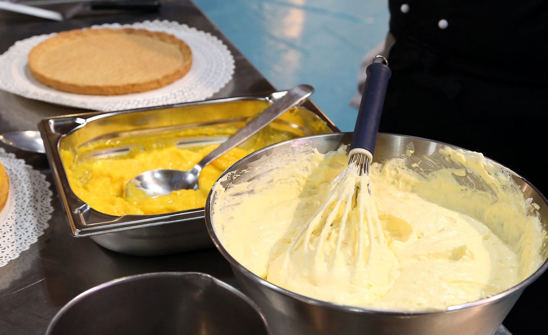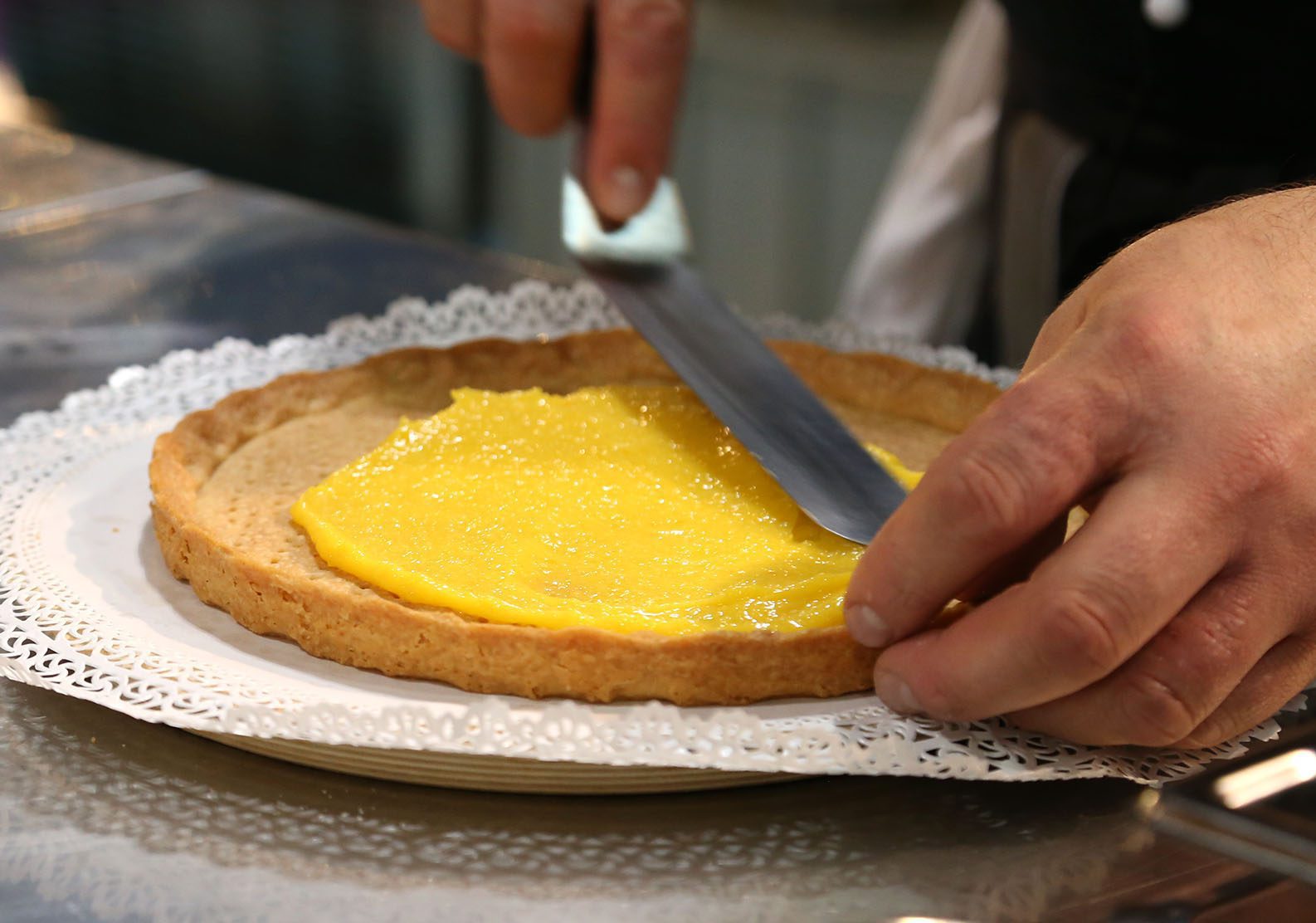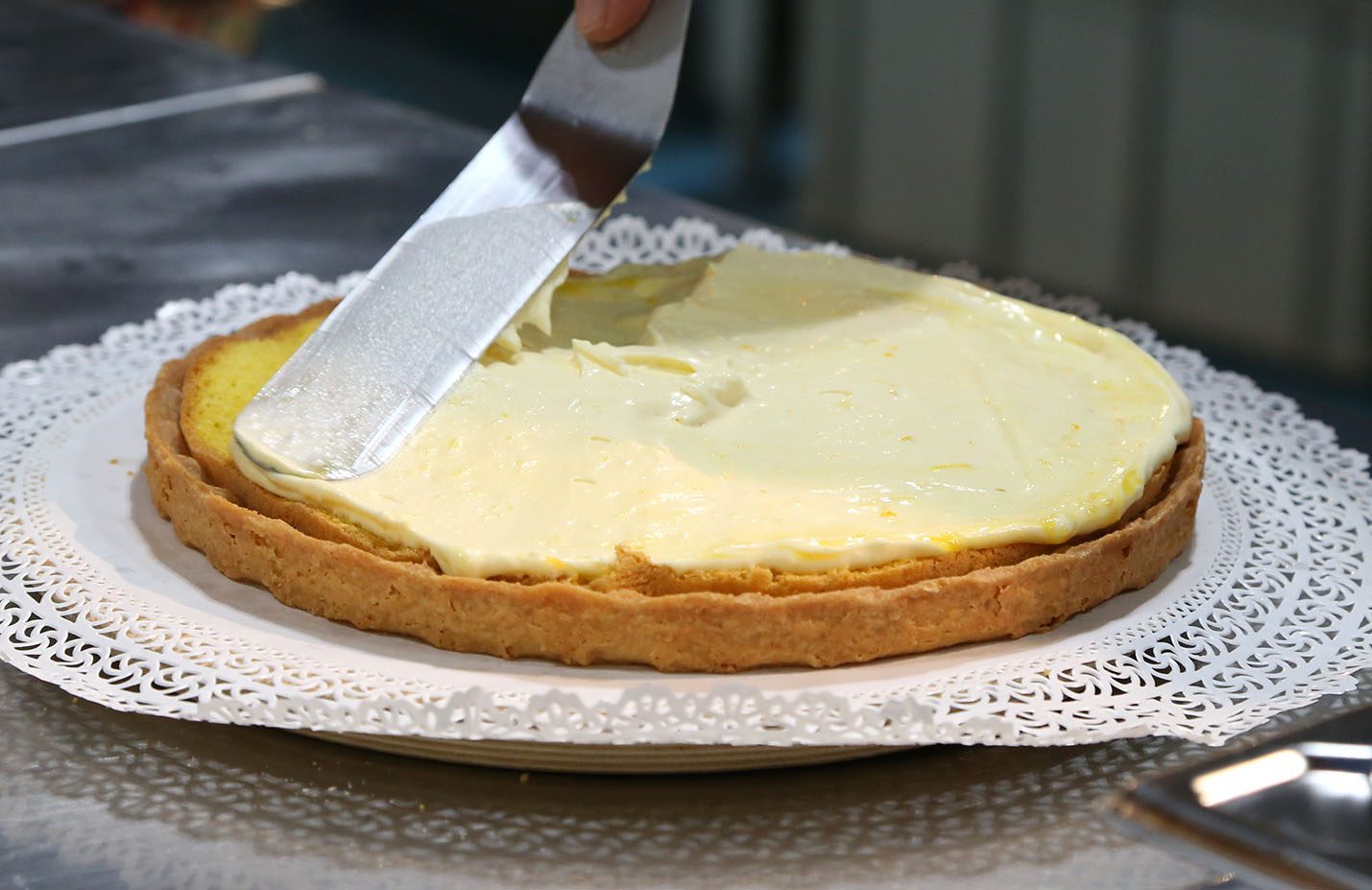 Preparare con della panna montata una chantilly con la crema al limone e disporla sul fondo dello stampo di pasta frolla; adagiarvi sopra un disco di pan di Spagna di circa mezzo centimetro e bagnarlo con uno sciroppo fatto con zucchero, acqua e buccia di limone.
