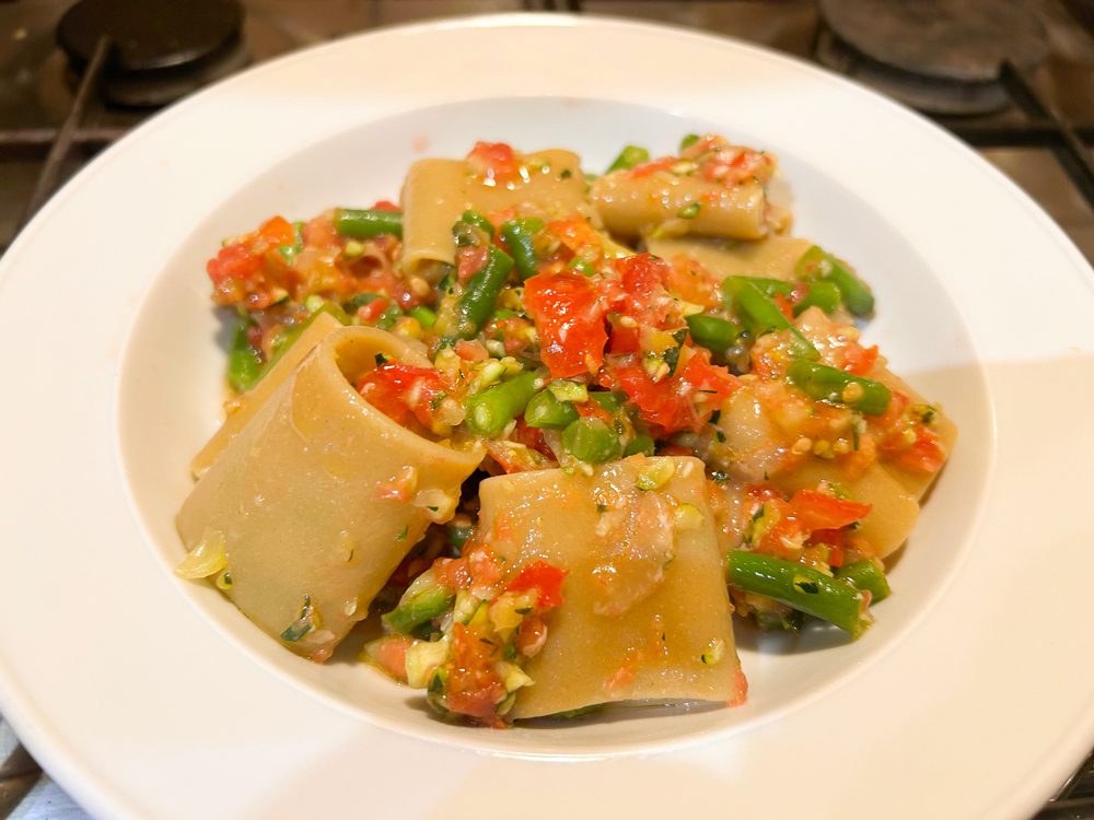 Le Mezzemaniche rigate farcite con verdure purea di broccoli verdi e salsa di granchio dello chef Vincenzo Cammerucci sono un primo piatto che celebra la freschezza e la ricchezza dei sapori del mare e della terra. Questa ricetta è un vero e proprio viaggio sensoriale, un incontro armonico di texture e gusti che rispecchia l’abilità dello chef Cammerucci nel trasformare ingredienti semplici in piatti di alta cucina. La pasta, con la sua superficie rigata perfetta per accogliere ogni tipo di condimento, diventa il palcoscenico ideale per un ripieno di verdure croccanti e saporite, mentre la purea di broccoli verdi introduce una nota di colore brillante e un gusto dolce e leggermente terroso.