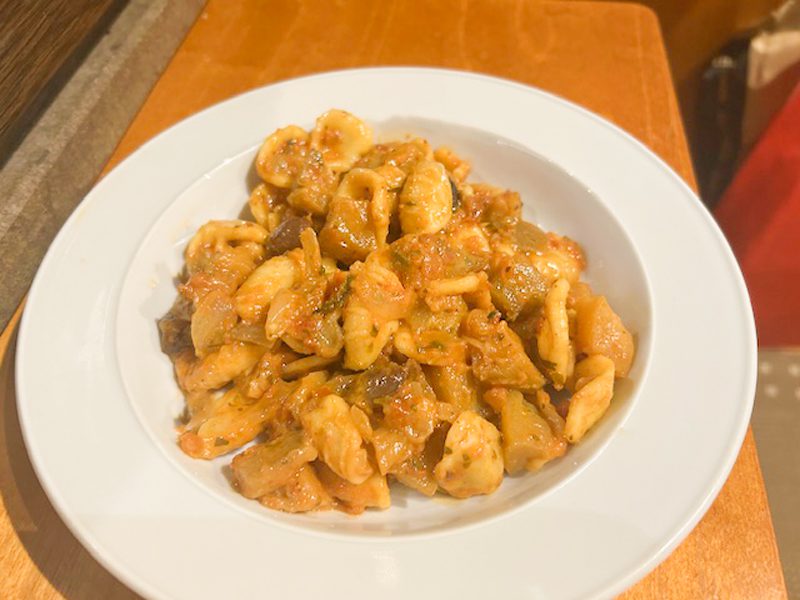 Le orecchiette con sugo di melanzane, olive taggiasche e pomodoro sono un tipo di pasta che raccoglie ogni frammento di condimento in una salsa mediterranea riconoscibile, con un equilibrio tra parte vegetale, sapidità delle olive e profumo del basilico. Ricetta ideale quando si vuole un piatto confortevole ma non pesante, semplice da realizzare e con una buona identità casalinga.