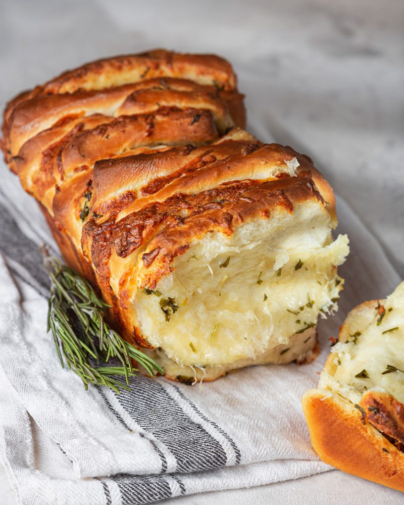 Il pane all’aglio (o garlic bread) è un piatto tipico della cucina americana. Si tratta di un pane molto soffice, quasi come un pan brioche, super delizioso e saporito, grazie all’aroma dell’aglio, del rosmarino e del burro.