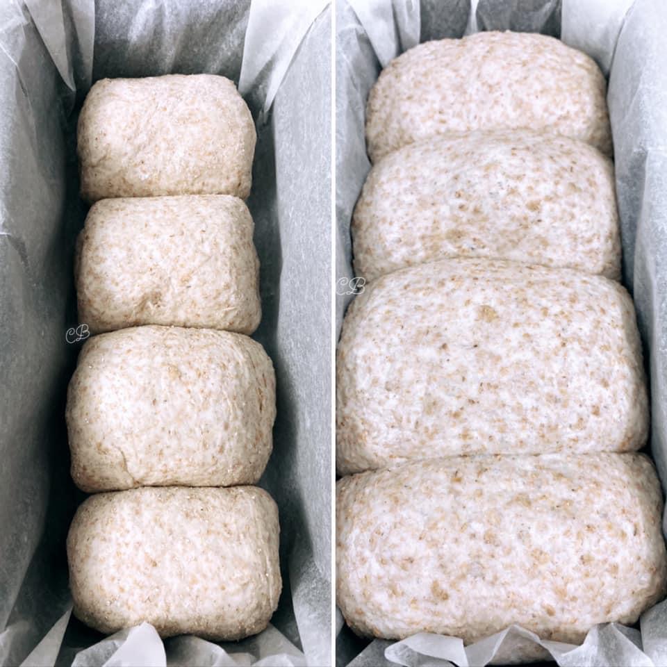 Coprire nuovamente e fare lievitare per almeno un’altra ora e mezza. L’impasto deve lievitare fino quasi al bordo dello stampo.