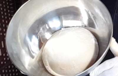 In mancanza dell’impastatrice, si può creare una fontana con la farina, aggiungete il lievito e l’acqua e fate sciogliere piano piano, impastando .