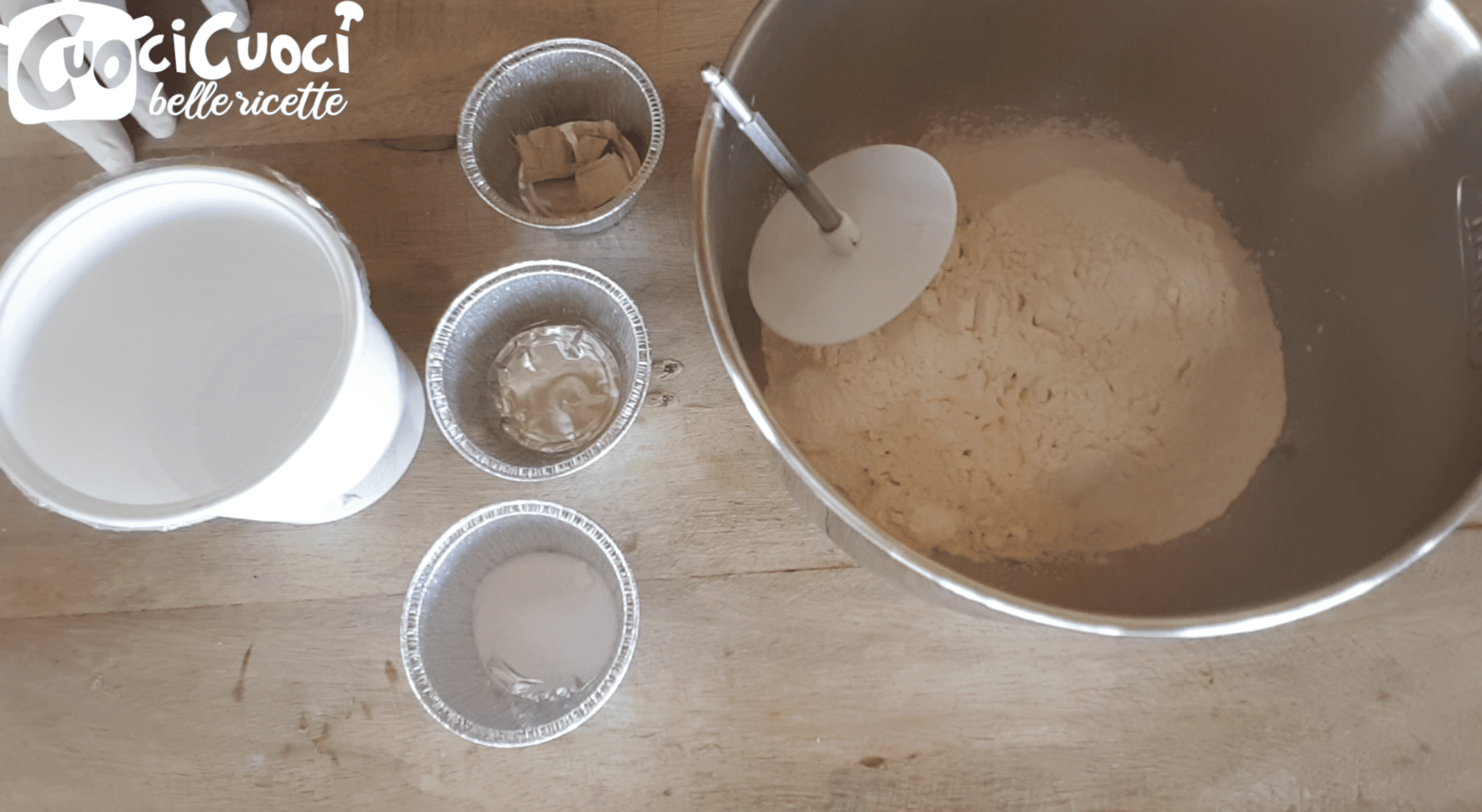 Per prima cosa, mettere nell’impastatrice la farina e il lievito e aggiungere l’acqua un poco alla volta.