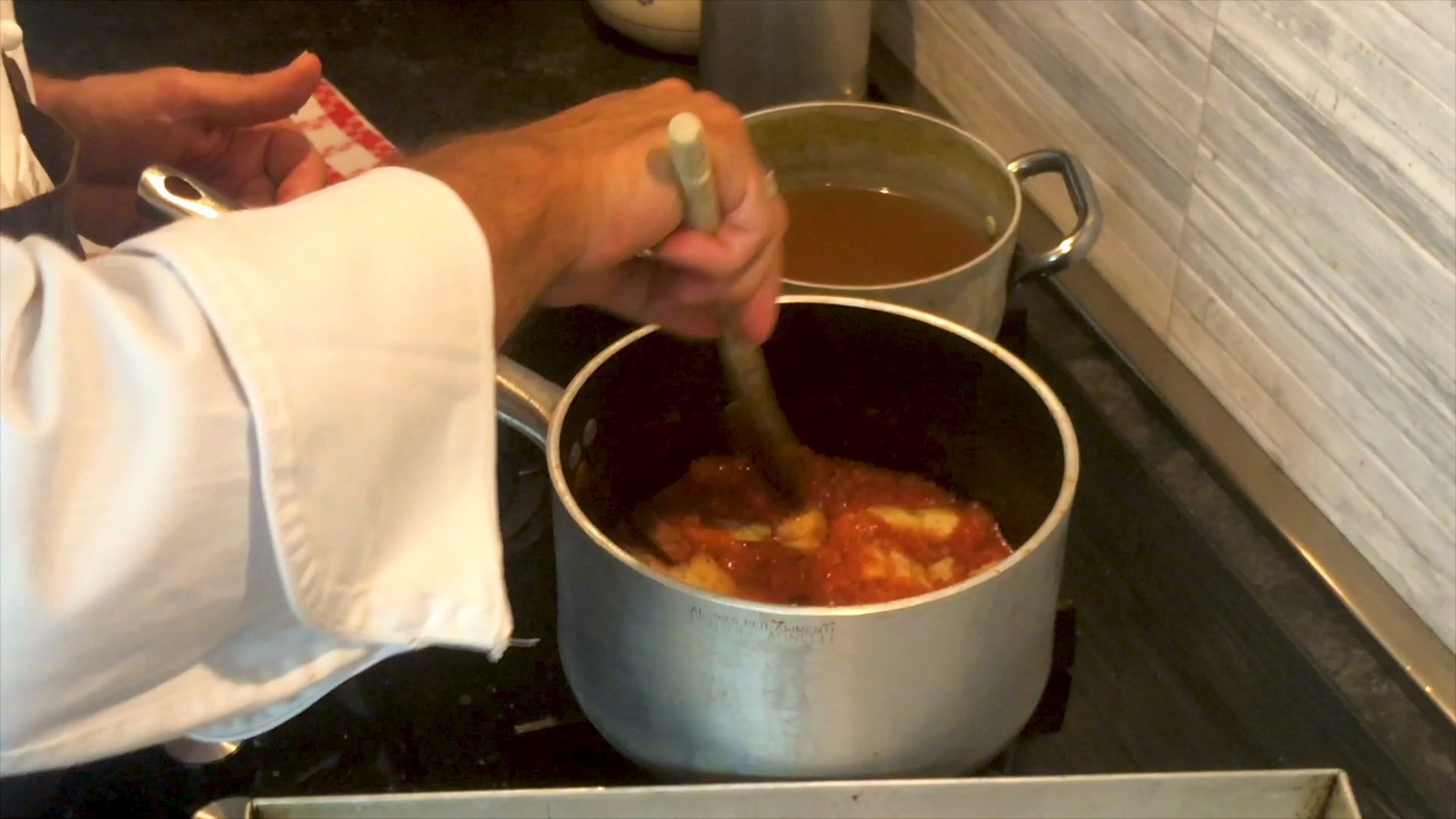 Con l’aiuto di un cucchiaio, cercare di rompere il pane e di amalgamarlo alla salsa, in modo tale da farla divenire una “pappa “.