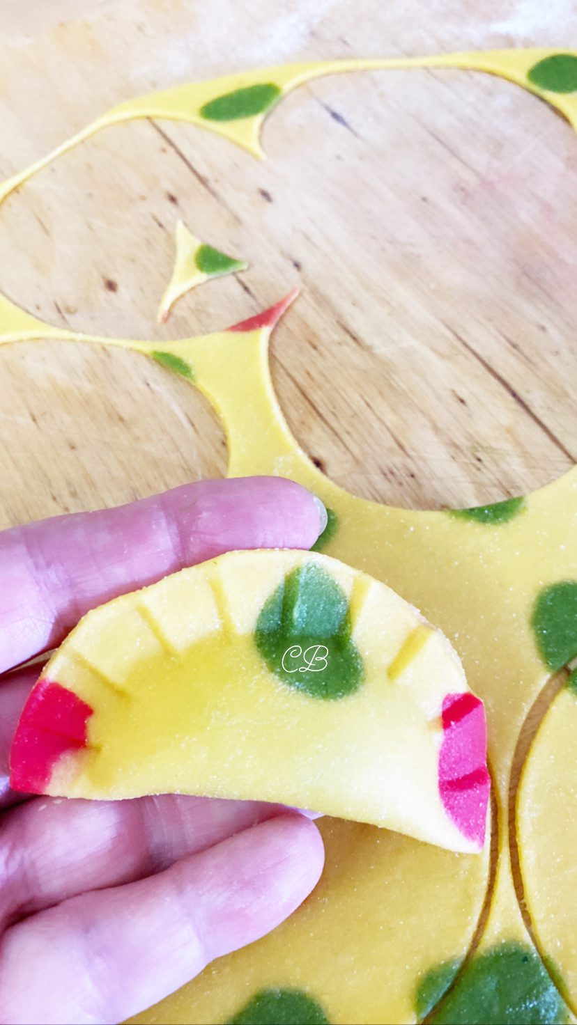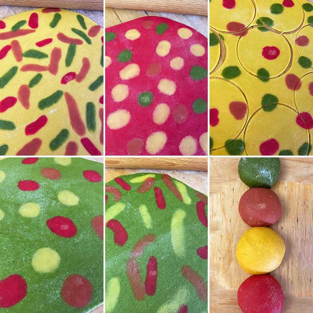 Nello stesso modo procedere con le altre sfoglie di diversi colori fino a ottenere altri 3 impasti omogenei per un totale di 4, come in foto.