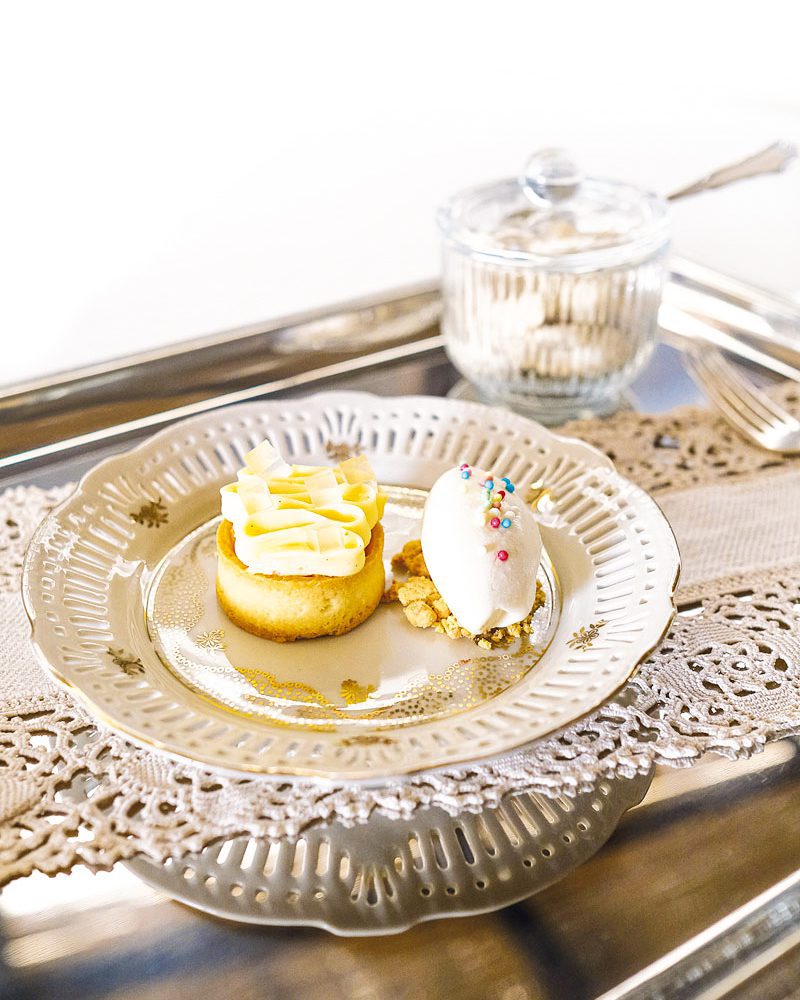 Servire al centro di un piattino da portata e completare con gelato alla vaniglia e confettini colorati per dare un tocco alla decorazione.