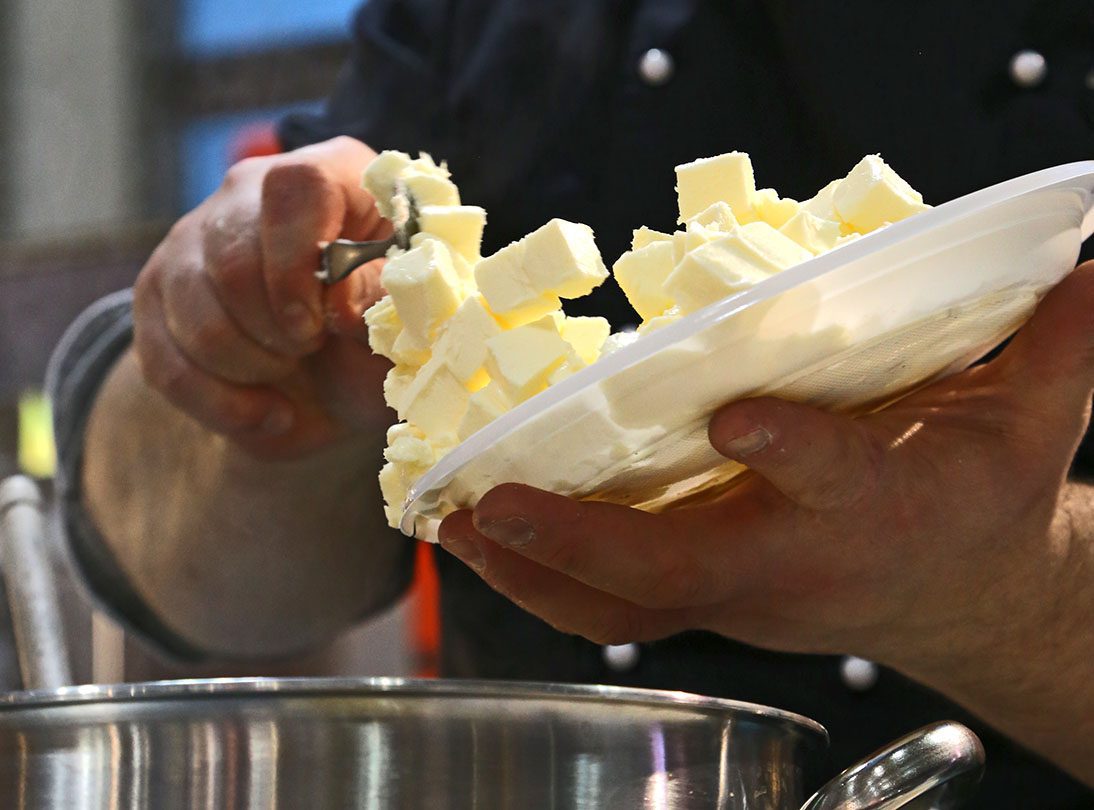 Alla fine, aggiungervi poi, in stagione o quando si hanno, i funghi porcini e i carciofi già cotti; portare a cottura e poi mantecare con un filo d’olio all’aglio, burro, sale, pepe, parmigiano reggiano e ancora un po’ di fondo di verdure affinché si possano sentire croccanti.
