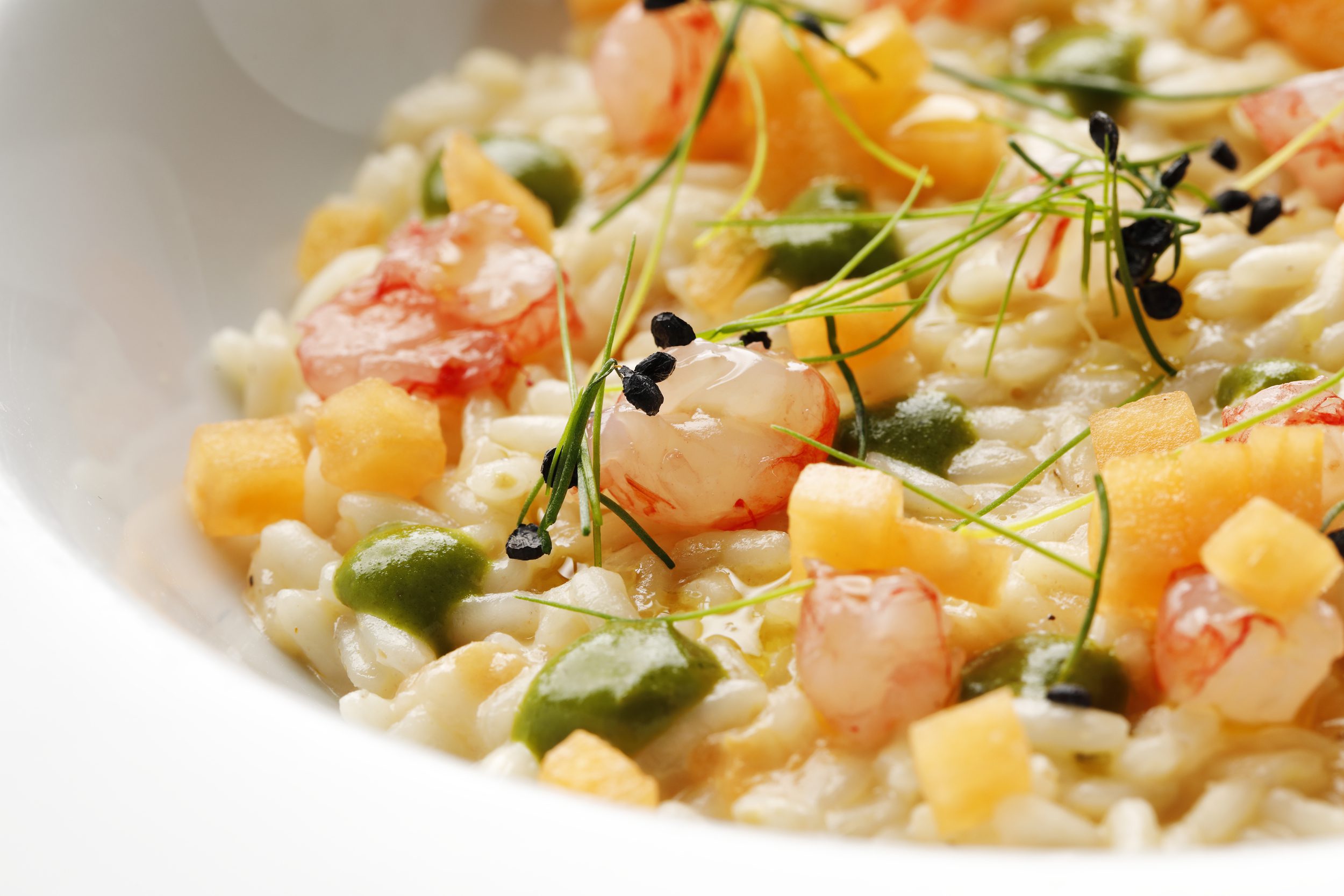 Il risotto con mazzancolle, melone e prosecco è un particolare risotto che abbina tre ingredienti speciali per creare un piatto unico, colorato e ricco di sapore.