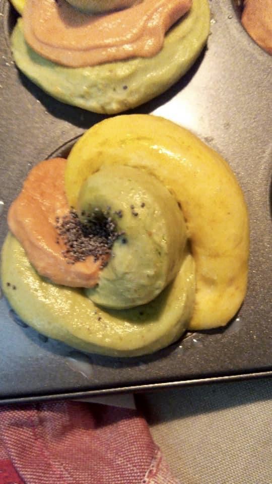 Successivamente, mettere a lievitare le 3 palline colorate fino al raddoppio.