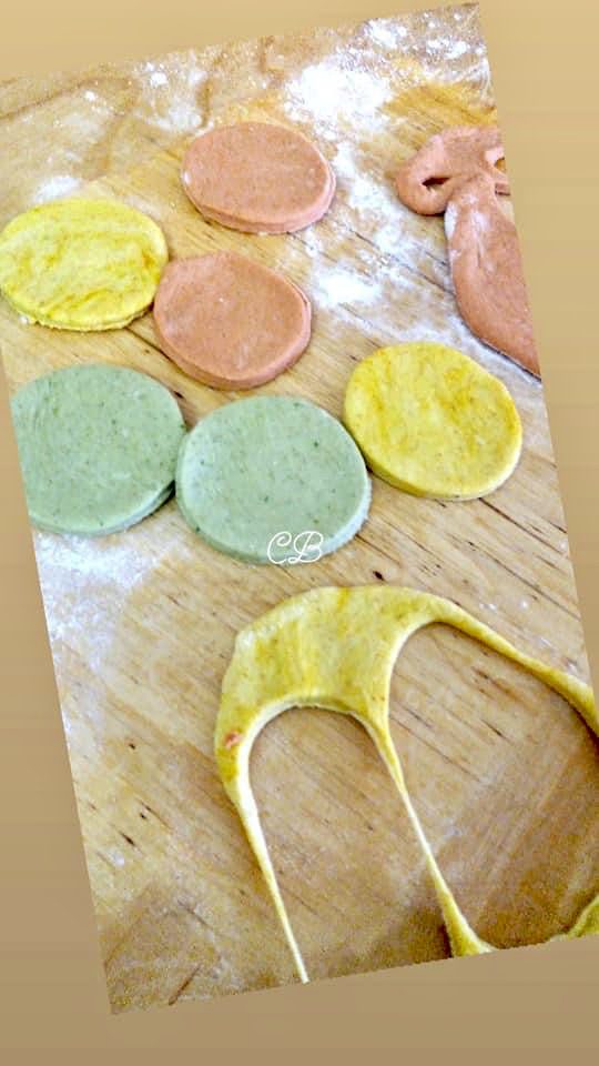 In un secondo momento, riprendere l’impasto, sgonfiarlo un poco con le mani, tirare leggermente col mattarello e tagliare con l’aiuto di un coppa pasta, oppure con un bicchiere, 3 o 4 dischetti.