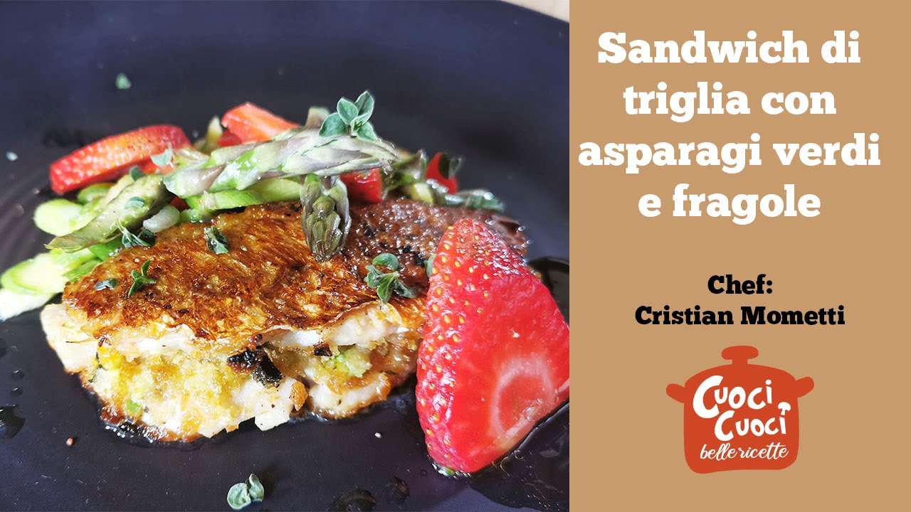 Lo chef Mometti prepara un sandwich di triglia con asparagi verdi e fragole, perfetti nel periodo di passaggio tra primavera ed estate.