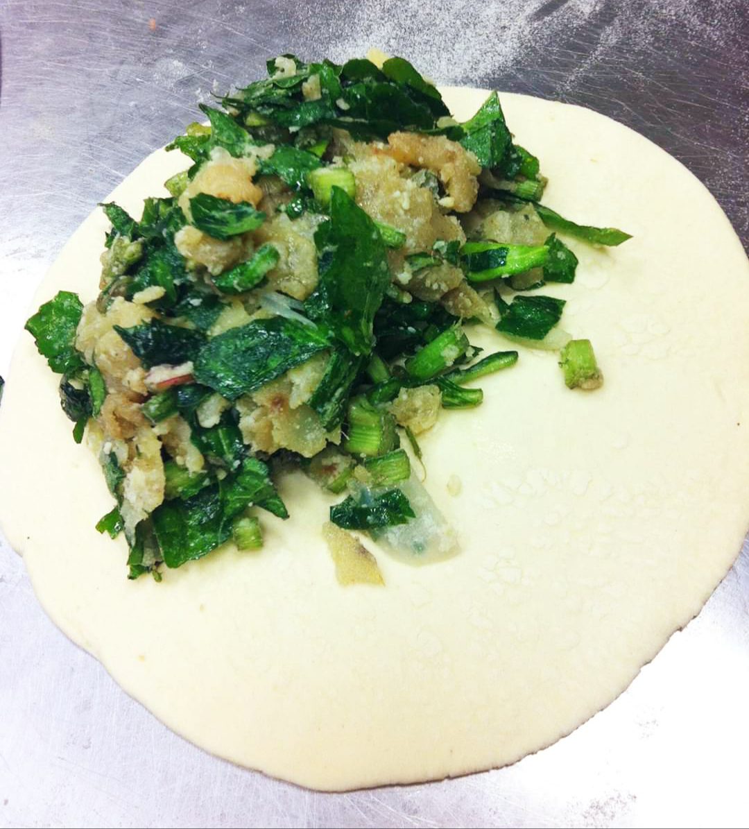 In questa ricetta, lo chef Enrico Brancato ha scelto un ripieno di spinaci e patate e, al posto di crearne una grande, ha diviso l’impasto per creare quattro scacciate di medie dimensioni.