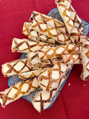 Quindi riporre la pasta sfoglia in frigorifero per circa un’ora per far solidificare la glassa.