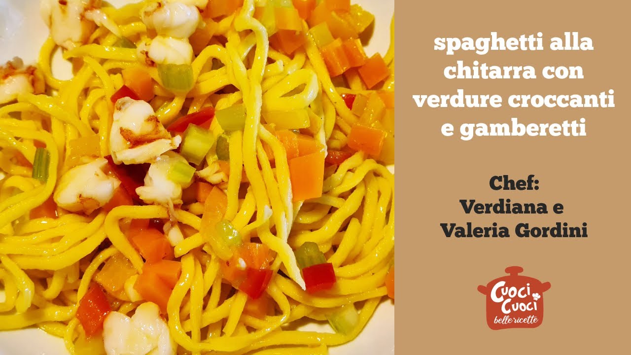 Gli spaghetti alla chitarra con verdure croccanti e gamberi con olio profumato allo scalogno sono un primo piatto semplice ma davvero delizioso, perfetto per il periodo estivo.