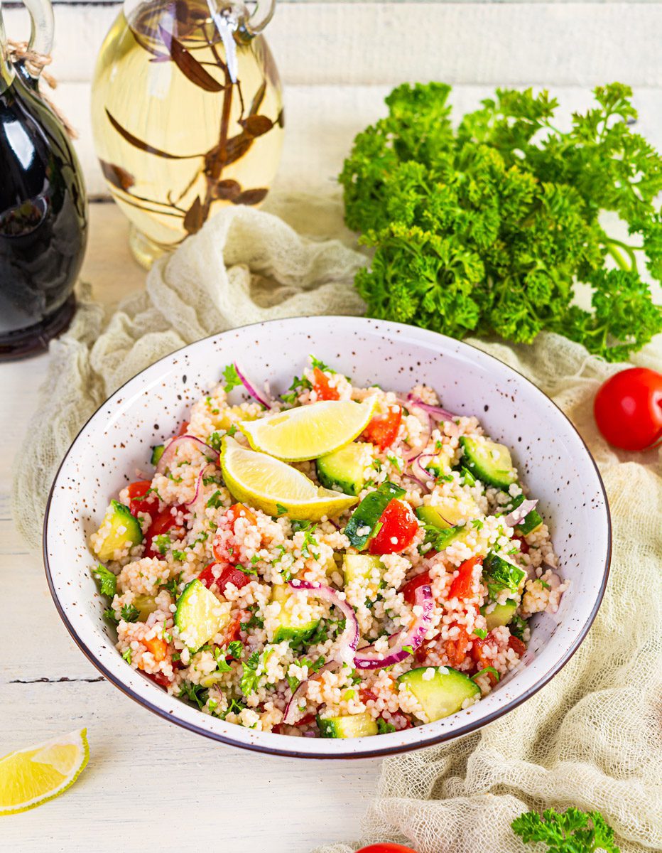 La tabulè, o tabbouleh, è un piatto tipico della cucina mediorientale, in particolare di quella libanese. Si tratta di un’insalata a base di bulgur, un particolare grano germogliato, e arricchita con varie verdure, tra cui cetrioli, cipolla e pomodori, e insaporita da erbe aromatiche quali prezzemolo e rosmarino. La taboulè è davvero facile da preparare ed essendo un piatto fresco è perfetta per l’estate.