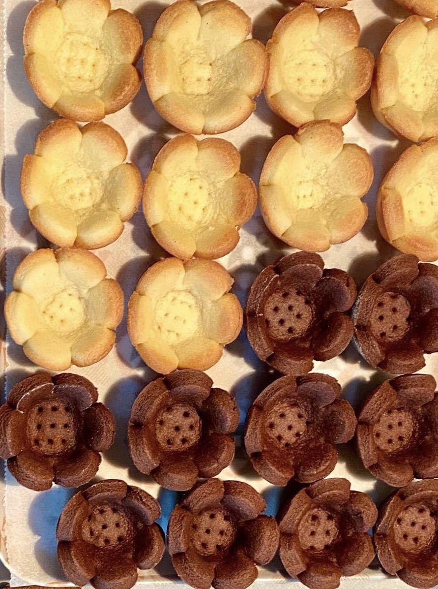 Per la variante al cioccolato procedere nella stessa maniera della frolla chiara aggiungendo del cacao amaro e un cucchiaino di albume.