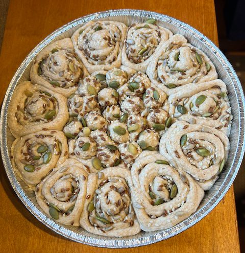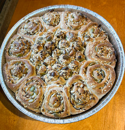 Questa torta di pane ai semi nasce proprio da quel piacere semplice, con un tocco rustico e nutriente. È un pane che si apre in tante piccole roselline dorate, arricchite da semi croccanti e da una sfumatura sapida data dalla salsa di soia, che sostituisce parte del sale e regala profumo e carattere.