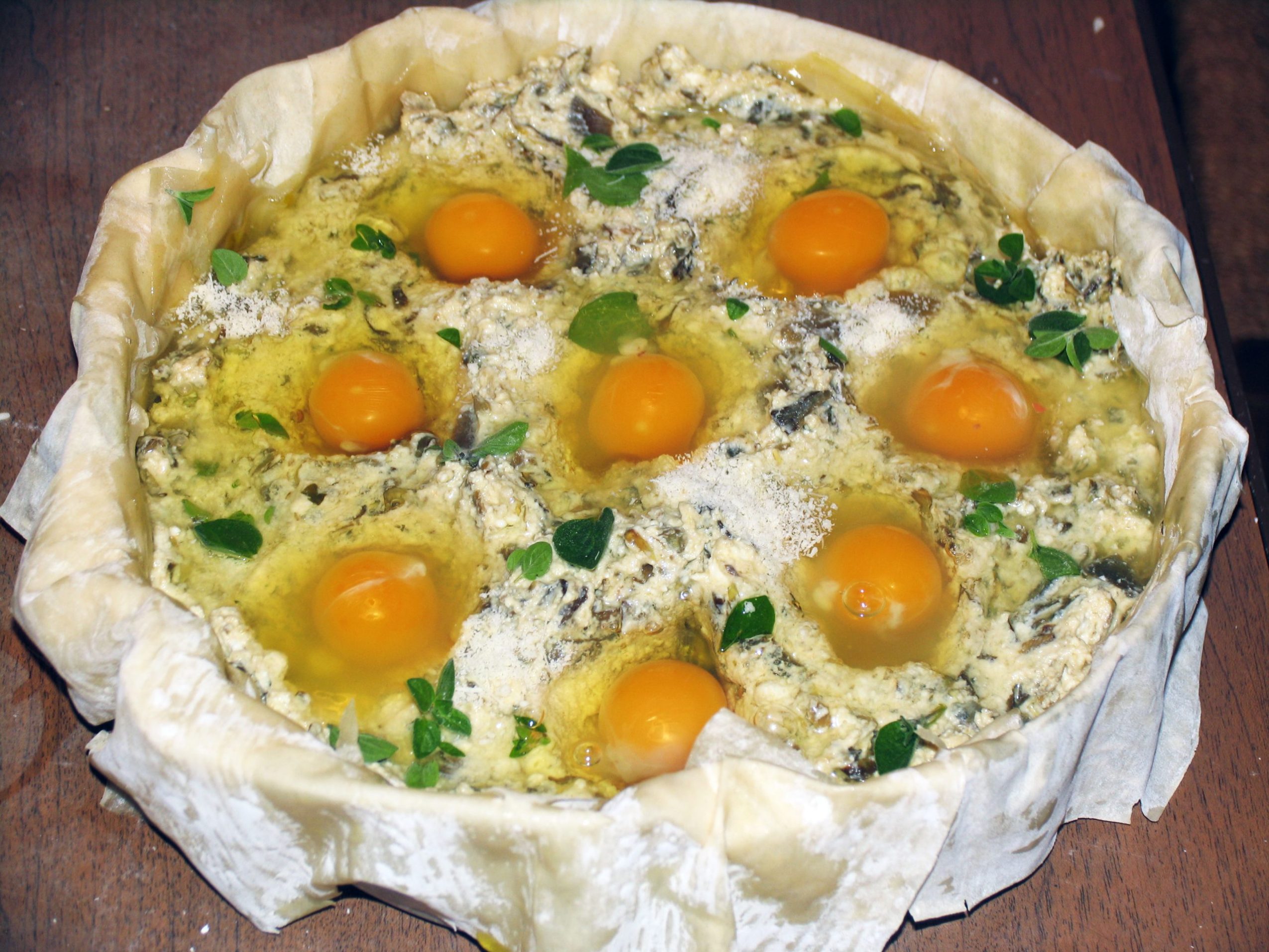 La torta Pasqualina è una torta salata tipica della cucina ligure, farcita con ricotta, erbette e uova intere, che di solito vengono benedette per Pasqua.