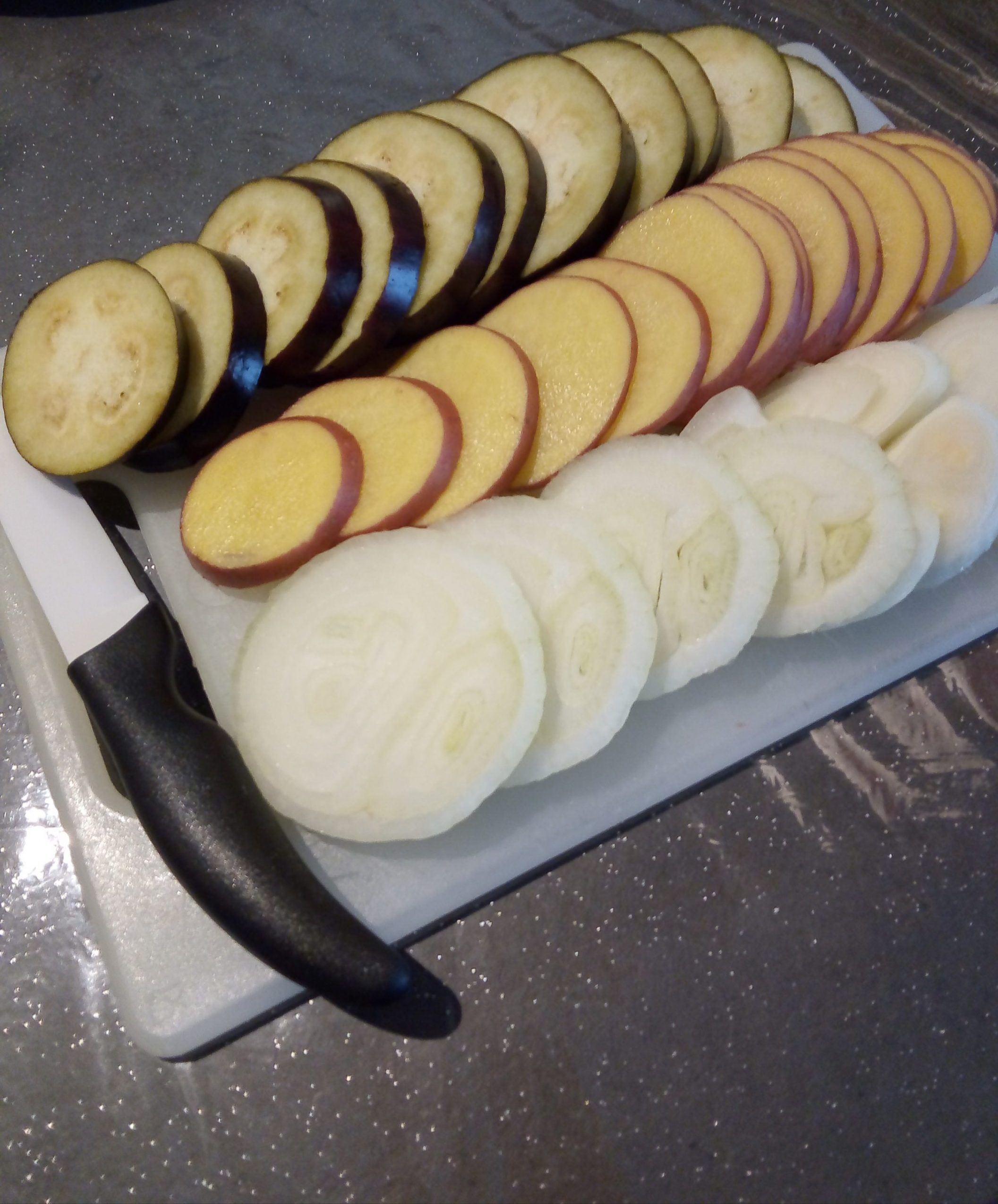 In questo caso la chef per passione Sabina Chioetto ha preferito usare le patate, le melanzane e la cipolla bianca.