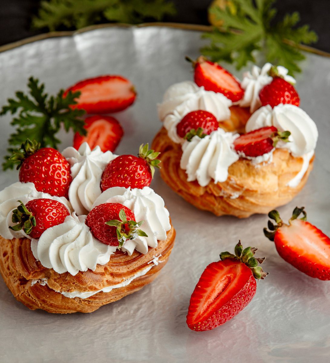 Le zeppole alla panna e fragole sono pronte per essere gustate!